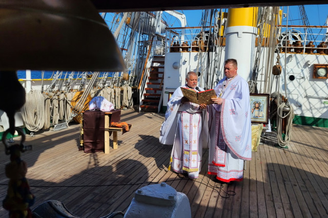 Pe 20 iulie a fost săvârșită la bord slujba de Sf. Ilie de către preotul militar locotenent-colonel Torino Dumitriu și preotul Trandafir Dragoș. Slujbele au loc la bord în fiecare zi de duminică.