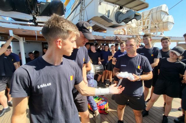De la sergentul sanitar Cristian Muntianu am aflat şi care sunt cele mai frecvente motive pentru care studenţii sau membrii echipajului apelează la sanitarii din infirmerie: „Cazurile diferă, de la o simplă tăietură până la o luxaţie, o răceală sau o faringită. Dintre motivele medicale minore pe primul loc se află bătăturile de la trasul la parâme, apoi insolaţia şi deshidratarea, care apar destul de des şi răcelile de la schimbarea bruscă de temperatură. Cât despre răul de mare, acesta nu se tratează, practic el se antrenează şi odată cu experienţa apare şi rezistenţa la răul de mişcare.”
