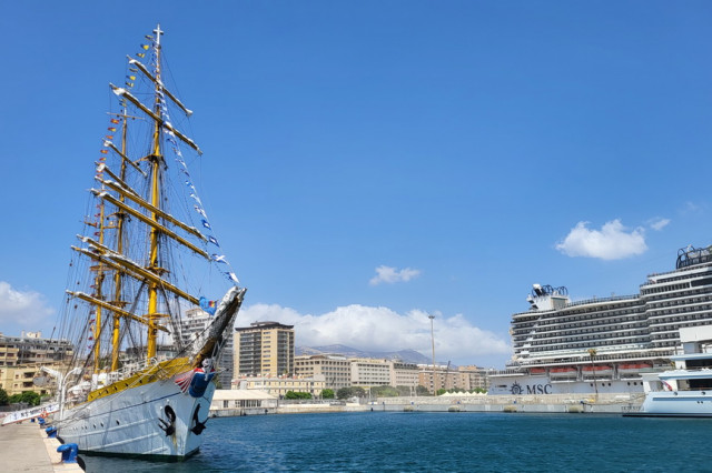 Pe 19 iulie plecam de la locul de acostare din portul La-Seyne-sur-Mer din rada Toulonului, prin Marea Mediterană şi prin Strâmtoarea Bonifacio, care desparte insulele Corsica şi Sardinia, reveneam în Marea Tireniană, mergând spre sud, pentru a intra în portul Palermo luni, 22 iulie. A fost o etapă scurtă pe mare în care velierul a parcurs 460 de mile marine. Se poate spune că suntem la jumătatea marșului de instrucție, pe drumul de întoarcere acasă.