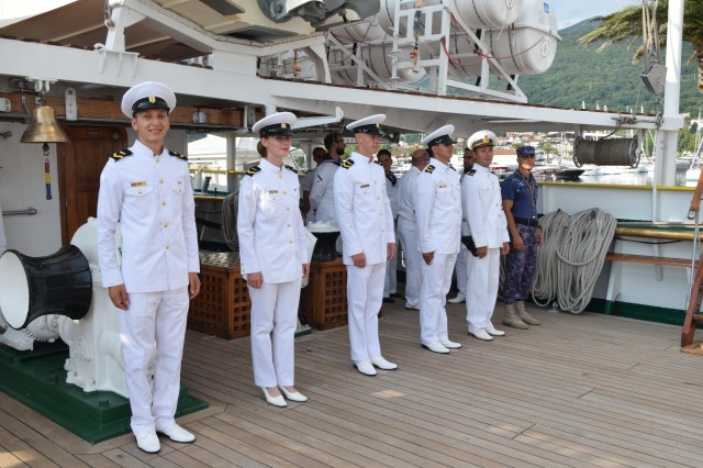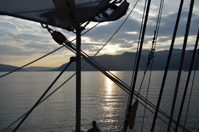 Calmul Golfului Kotor a permis lăsarea la apă a ambarcațiunilor de 10+1 și desfășurarea lecțiilor școlii de rame. Astfel, fiecare cadet, alături de alți nouă colegi, a avut ocazia să învețe și să exerseze, în barcă, o nouă procedură ce include munca în echipă și în sincron. Efortul lor a fost răsplătit cu satisfacția de a depăși cu brio o nouă provocare, dar și cu rezervarea celor mai bune locuri pentru a admira nava-școală, personajul principal într-un peisaj de poveste.