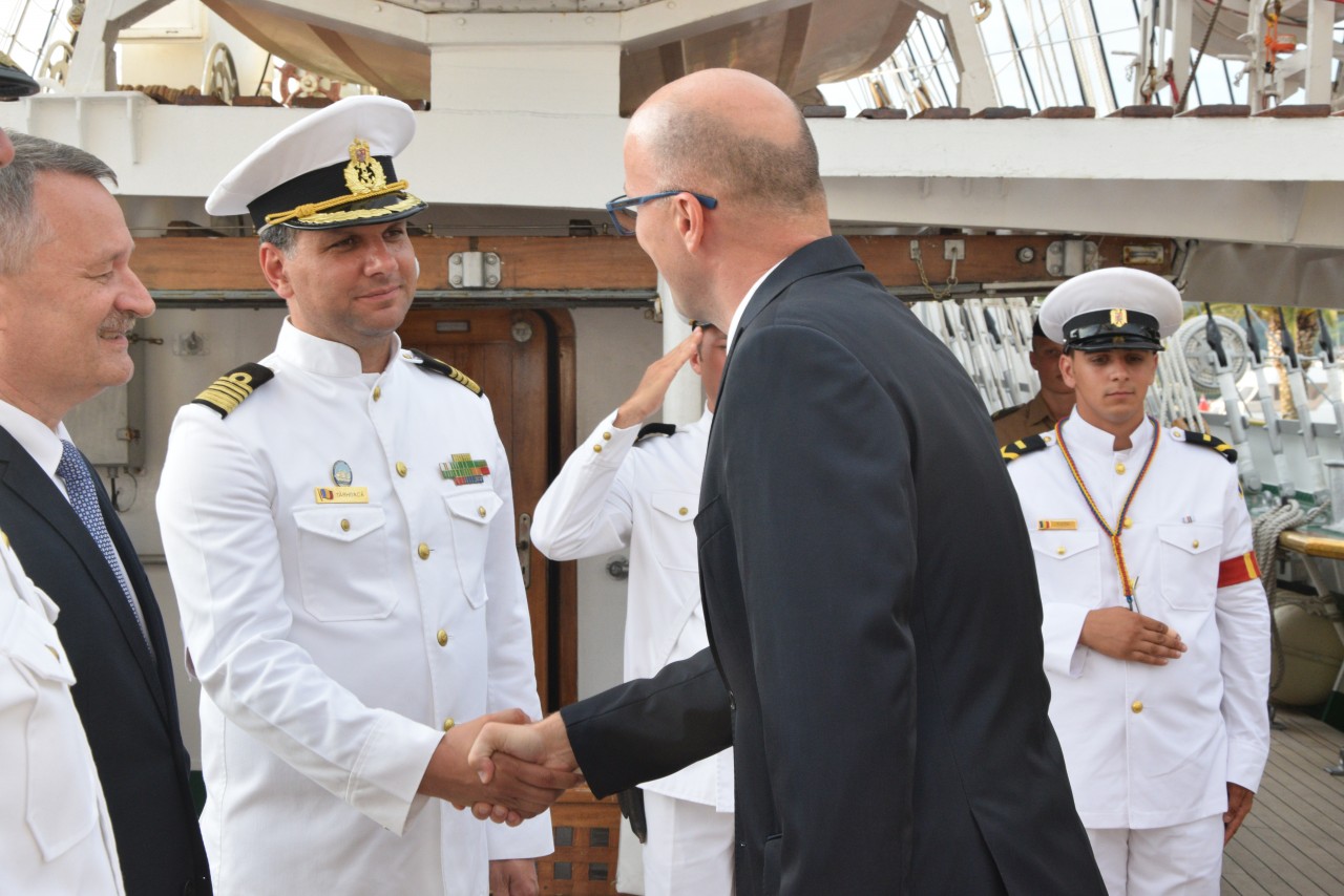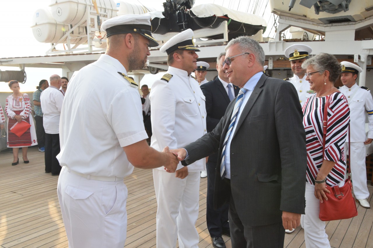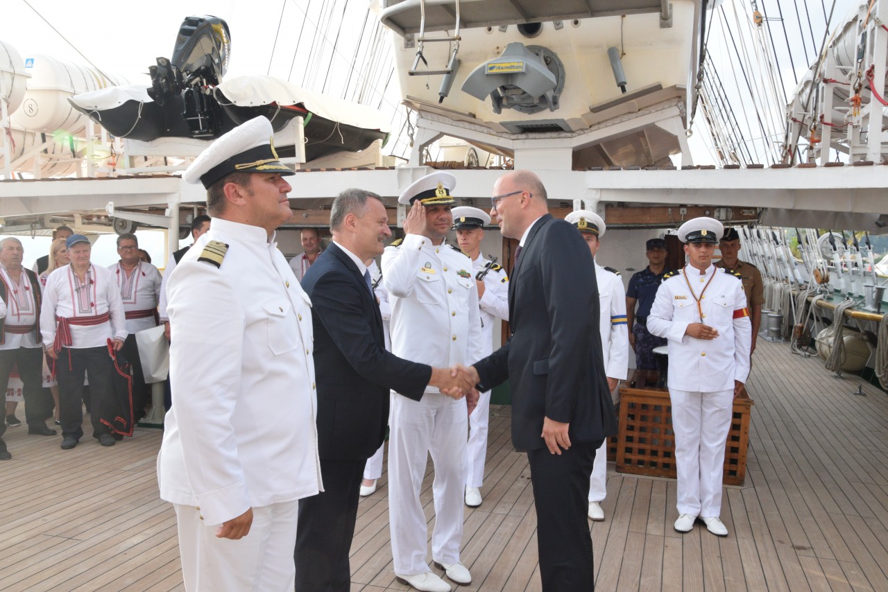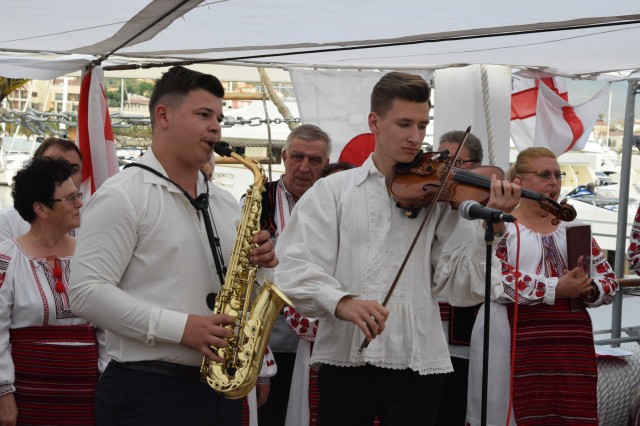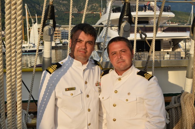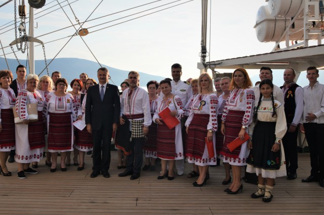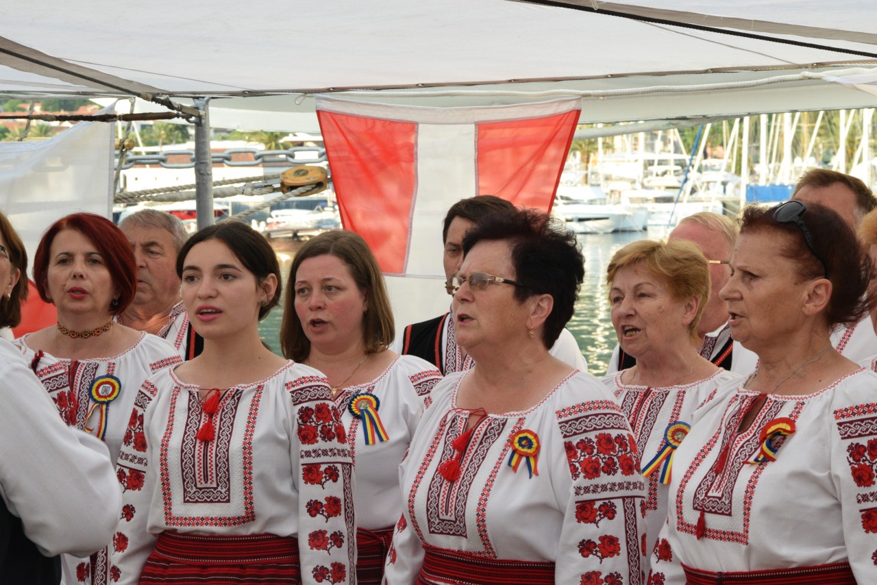 Astfel, în cel de-al doilea port al călătoriei noastre, am fost așteptați ca de obicei de oficialitățile române din teritoriu, pe care cadeții noștri le-au salutat marinărește din înaltul catargelor. „Am lăsat ancora la apă”, iar nava noastră a devenit în acea zi gazda reprezentanților celor mai importante instituții din zonă, dar și a fraților noștri de acasă, care, la invitația Eminenței Sale domnul Ferdinand Nagy, Ambasadorul României la Podgorița, au venit pentru a ne cânta românește spre bucuria tuturor.