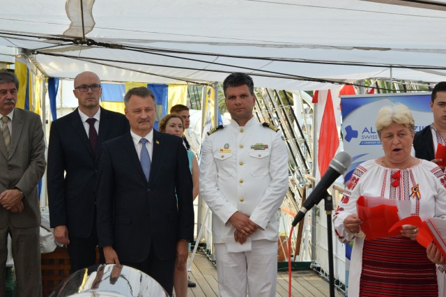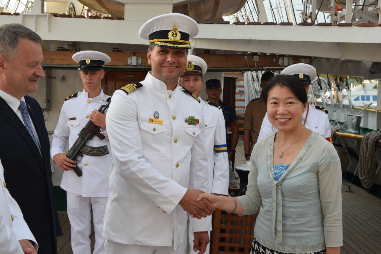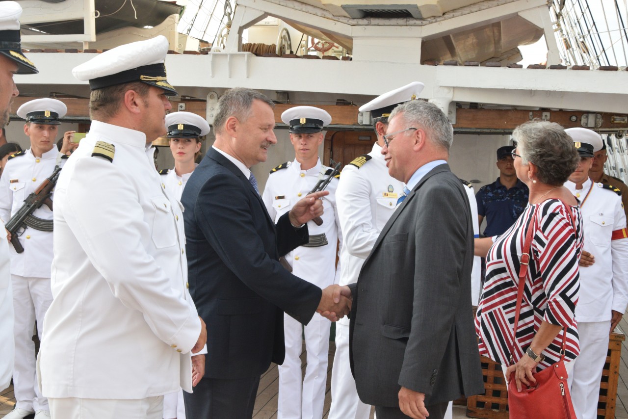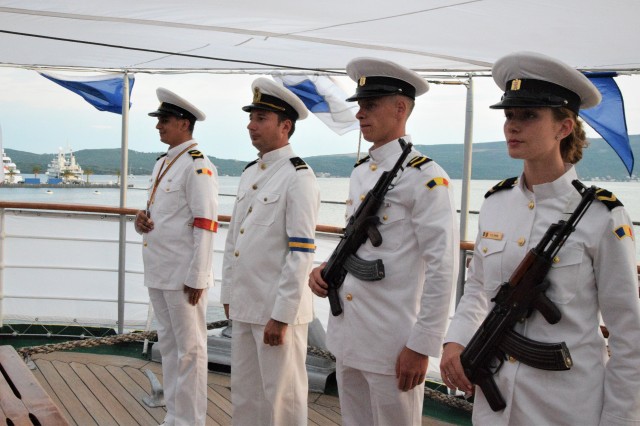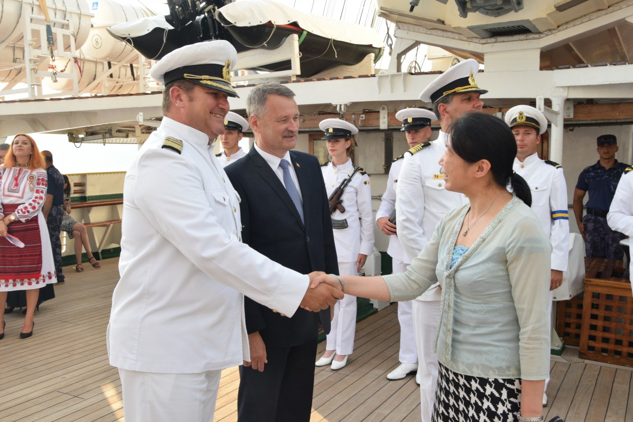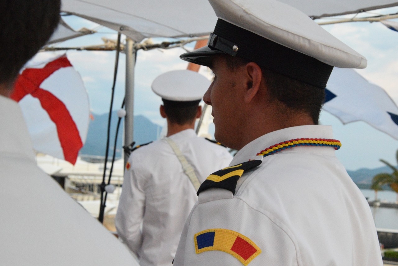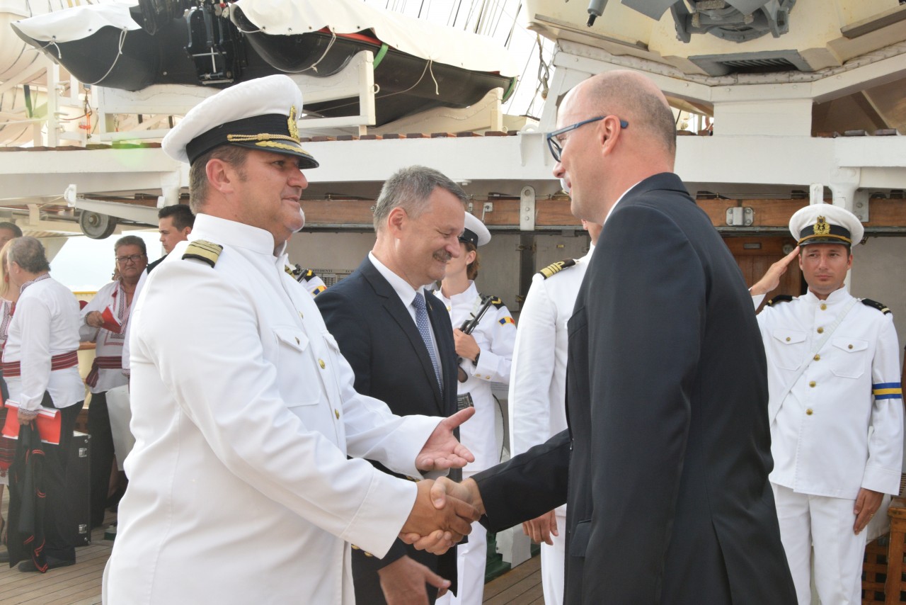 Astfel, în cel de-al doilea port al călătoriei noastre, am fost așteptați ca de obicei de oficialitățile române din teritoriu, pe care cadeții noștri le-au salutat marinărește din înaltul catargelor. „Am lăsat ancora la apă”, iar nava noastră a devenit în acea zi gazda reprezentanților celor mai importante instituții din zonă, dar și a fraților noștri de acasă, care, la invitația Eminenței Sale domnul Ferdinand Nagy, Ambasadorul României la Podgorița, au venit pentru a ne cânta românește spre bucuria tuturor.
