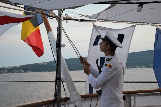 După plecarea din Italia, instructorii de la bord au continuat pregătirea cu viitorii marinari militari, fiecare moment al zilelor pe mare fiind încărcat cu activități atât pe navă, cât și în apele Mării Adriatice. Condițiile meteorologice au reprezentat un element important în ceea ce a privit organizarea programului pentru cadeți. Vântul bun și marea mai puțin liniștită au dus membrii echipajului cu gândul la un singur lucru, cel al întinsul velelor pentru a continua drumul cu ajutorul lor. Acest aspect a reprezentat o nouă lecție, deja învățată, pentru cei aflați în practică. Buna organizare, rolurile știute de fiecare și atenția coordonatorilor au făcut din manevra complicată un adevărat spectacol, atât pentru marinarii vechi, cât și pentru cei din afara fenomenului.