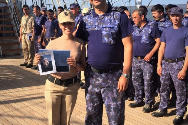 Astfel, în cel de-al doilea port al călătoriei noastre, am fost așteptați ca de obicei de oficialitățile române din teritoriu, pe care cadeții noștri le-au salutat marinărește din înaltul catargelor. „Am lăsat ancora la apă”, iar nava noastră a devenit în acea zi gazda reprezentanților celor mai importante instituții din zonă, dar și a fraților noștri de acasă, care, la invitația Eminenței Sale domnul Ferdinand Nagy, Ambasadorul României la Podgorița, au venit pentru a ne cânta românește spre bucuria tuturor.