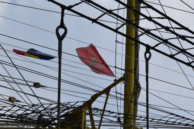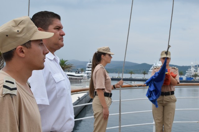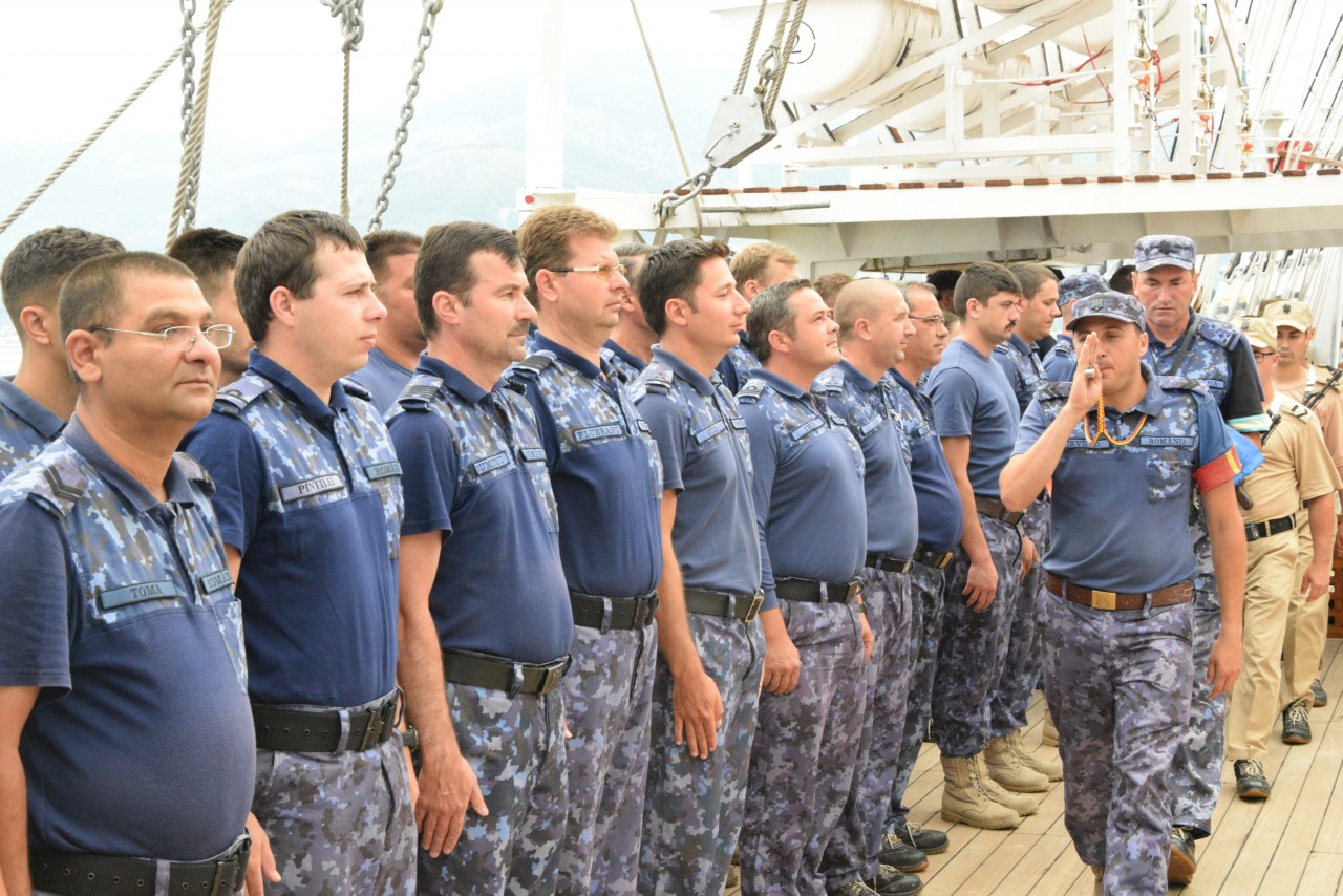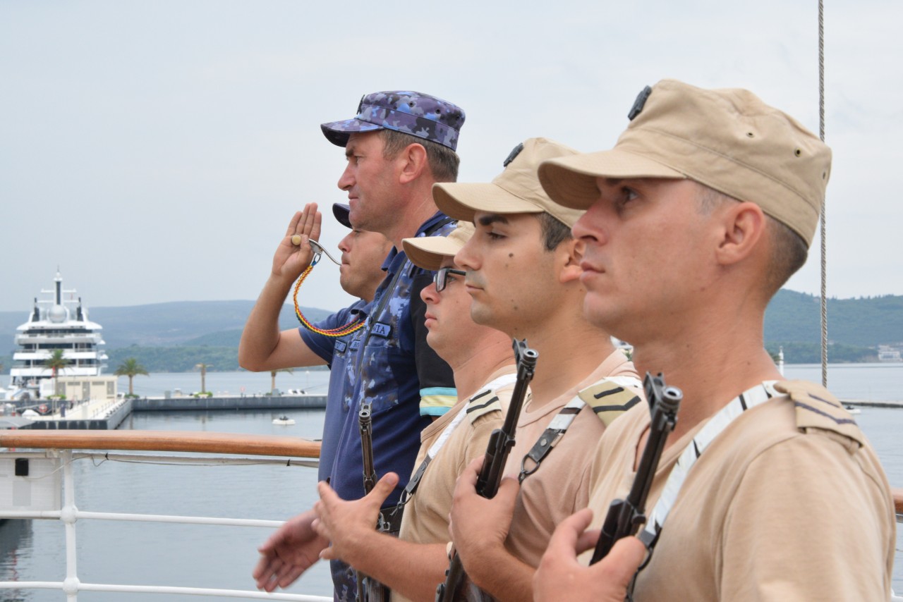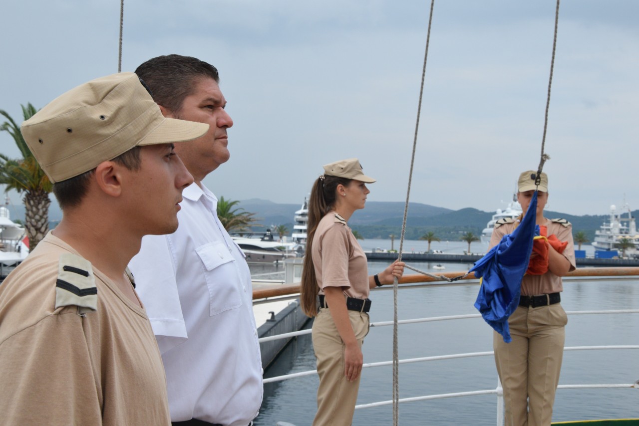 Astfel, în cel de-al doilea port al călătoriei noastre, am fost așteptați ca de obicei de oficialitățile române din teritoriu, pe care cadeții noștri le-au salutat marinărește din înaltul catargelor. „Am lăsat ancora la apă”, iar nava noastră a devenit în acea zi gazda reprezentanților celor mai importante instituții din zonă, dar și a fraților noștri de acasă, care, la invitația Eminenței Sale domnul Ferdinand Nagy, Ambasadorul României la Podgorița, au venit pentru a ne cânta românește spre bucuria tuturor.