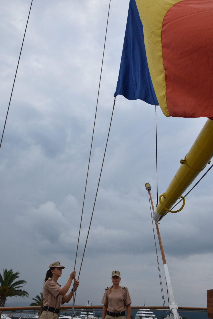 După plecarea din Italia, instructorii de la bord au continuat pregătirea cu viitorii marinari militari, fiecare moment al zilelor pe mare fiind încărcat cu activități atât pe navă, cât și în apele Mării Adriatice. Condițiile meteorologice au reprezentat un element important în ceea ce a privit organizarea programului pentru cadeți. Vântul bun și marea mai puțin liniștită au dus membrii echipajului cu gândul la un singur lucru, cel al întinsul velelor pentru a continua drumul cu ajutorul lor. Acest aspect a reprezentat o nouă lecție, deja învățată, pentru cei aflați în practică. Buna organizare, rolurile știute de fiecare și atenția coordonatorilor au făcut din manevra complicată un adevărat spectacol, atât pentru marinarii vechi, cât și pentru cei din afara fenomenului.