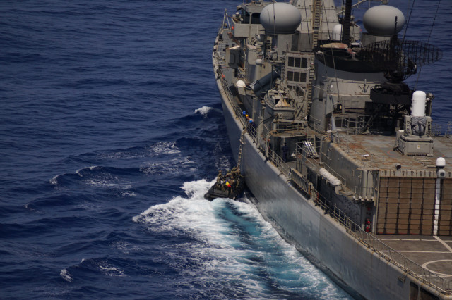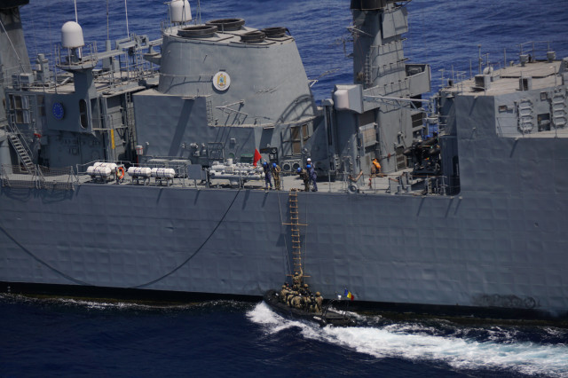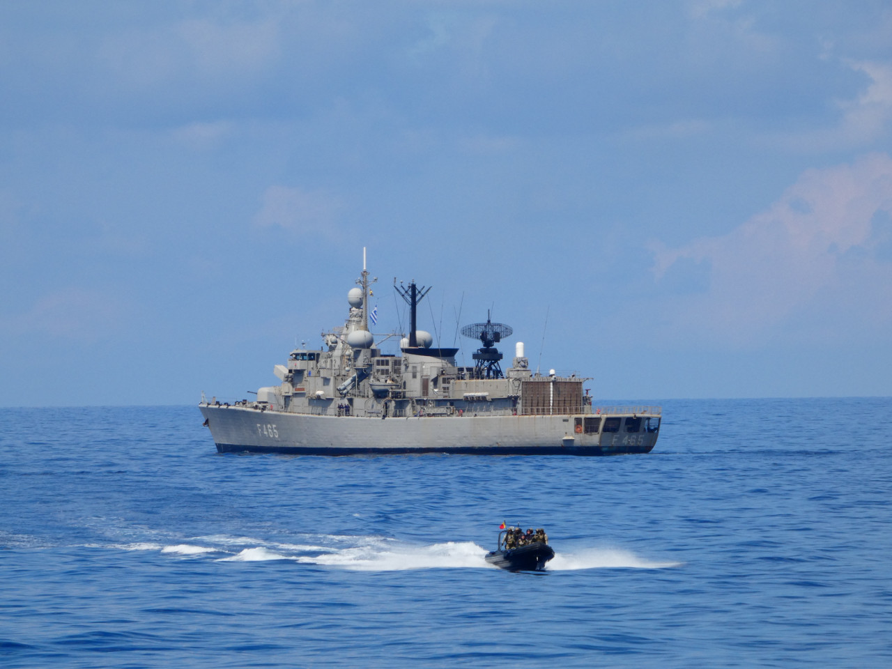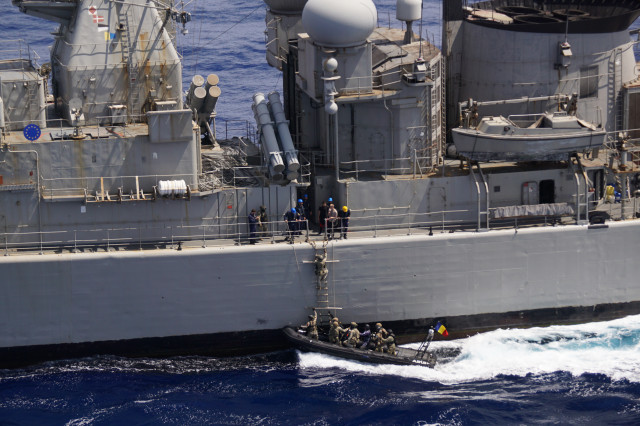 În vederea dezvoltării interoperabilității între parteneri, nava Forțelor Navale Române și o navă a Forțelor Navale Elene, fregata grecească „Themistoklis” – 465, au desfășurat miercuri, 14 mai, exerciții în comun, manevre și evoluții simple, precum și activități complexe de evaluare a echipelor de comandă și de inspecție a navelor. În acest context, s-a executat un exercițiu de interdicție maritimă, în care echipele de boarding ale fregatei „Regele Ferdinand” au urcat la bordul fregatei grecești „Themistoklis” pentru verificarea acesteia, inspecția desfășurându-se în condiții normale de cooperare.
