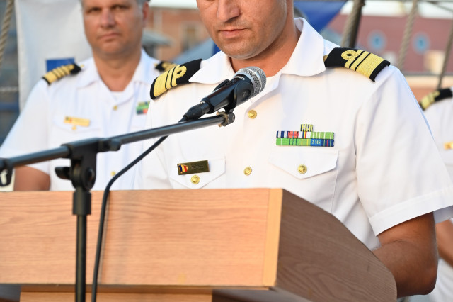 „Seara zilei de 24 iulie, la o zi după acostarea navei-școală „Mircea” în portul Bari, a adus nu doar întâlnirea cu un simbol al tradiției navale românești, ci și un prilej de reafirmare a valorilor pe care România le susține cu consecvență: educație, tradiție maritimă și deschidere culturală într-un cadru european. Relațiile autentice de cooperare nu se consolidează numai în sediile instituțiilor sau în baza documentelor oficiale. Ele se construiesc constant, acolo unde dialogul este potențat de valori comune – așa cum a fost, pentru câteva ore, pe puntea navei-școală „Mircea” – Consulatul României în Bari