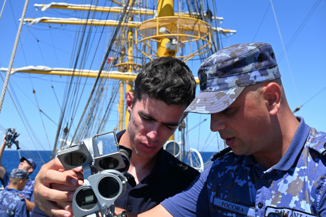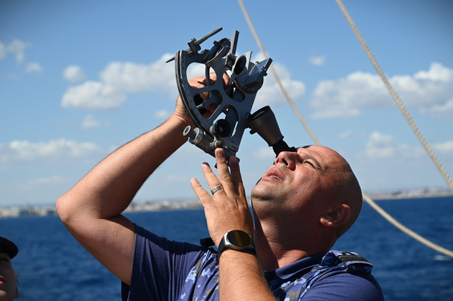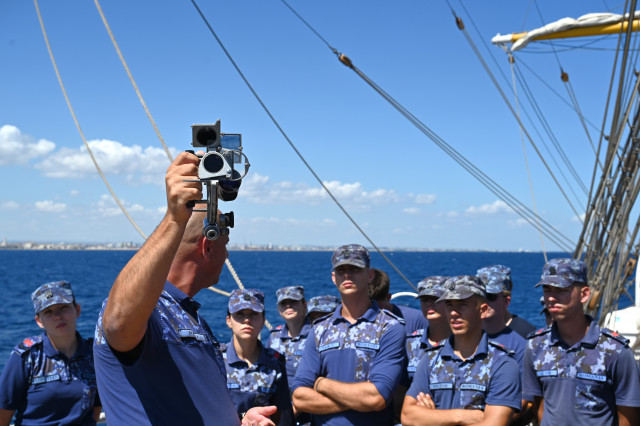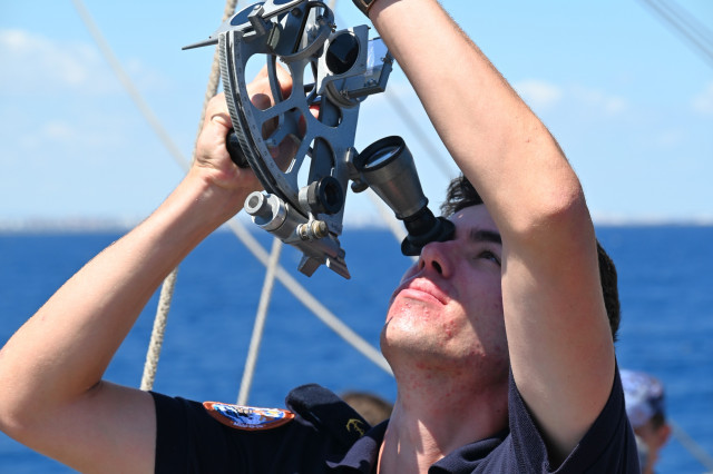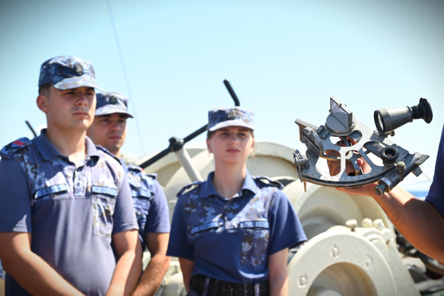Noaptea, când s-a lăsat liniștea peste punțile navei-școală „Mircea”, studenții au fost invitați la prova navei să participe la un curs de navigație astronomică, unde au învățat să se orienteze în funcție de stele. Aceasta este una dintre materiile la care cadeții vor da examen, așa că pregătirile au continuat și pe zi cu un curs practic despre sextant și navisferă, susținut de locotenent-comandorul Andrei Pocora de la Academia Navală „Mircea cel Bătrân”. Studenții au aflat care sunt elementele sextantului și cum pot măsura cu el unghiul vertical format între un corp ceresc și orizont și cum se pot orienta în funcție de constelațiile marcate pe navisferă, instrument cunoscut și sub numele de „glob ceresc”. Pentru unul dintre studenții veniți de la Academia Navală a Franței, Achille Dupoux-Sevin-Allouet, experiența a fost una cu adevărat inedită. Cadetul francez va fi cu un pas înaintea colegilor săi, deoarece navigația astronomică este o materie cu care se vor întâlni abia în următorul an de studiu.