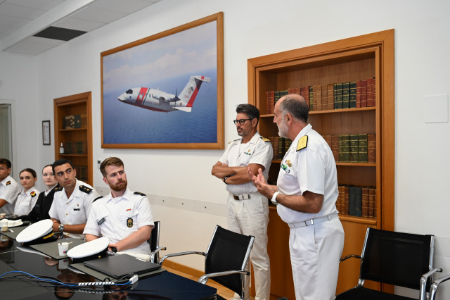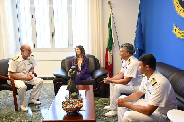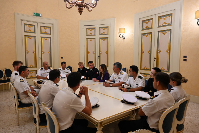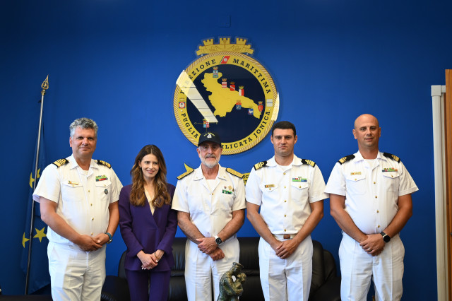 Prima zi în port a fost dedicată vizitelor oficiale. Alături de consulul general al României în Bari, Ioana Gheorghiaș, comandantul marșului, comandorul Mircea Târhoacă și comandantul navei, căpitan-comandorul Silviu Moraru, s-au întâlnit cu Directorul maritim al Pugliei și Basilicatei Ionice și comandant al portului Bari, contraamiral Francesco Vincenzo Leone, cu prefectul provinciei Bari, Excelența Sa Francesco Russo și cu primarul orașului metropolitan Bari, Vito Leccese. La vizite au participat cadeții români de la Academia Navală „Mircea cel Bătrân”, dar și studenții străini din Franța, Letonia, Norvegia, Polonia și Turcia, însoțiți de instructorii lor de la Academia Navală „Mircea cel Bătrân”, lt. cdor Dragoș Simion și lt. cdor Andrei Pocora, care au avut parte de un tur al instituțiilor reprezentative pentru orașul de pe malul Mării Adriatice.