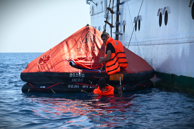 Atunci când timpul de navigație dintre porturi este limitat, activitățile de la bordul navei se succed într-un ritm alert. Astfel, la scurt timp s-a auzit anunțul „Om la apă!”, ce a dat startul unui exercițiu de salvare a unui om căzut peste bord. Echipajul a aplicat imediat toate procedurile pentru a salva persoana, de la executarea unei manevre pentru ca nava să fie cât mai aproape de „victimă”, până la recuperarea ei și aducerea în siguranță la bord, unde echipa medicală era pregătită să intervină în cel mai scurt timp.