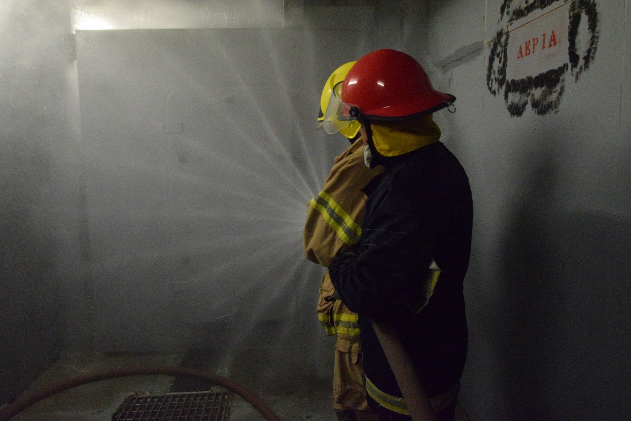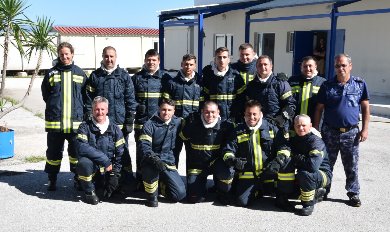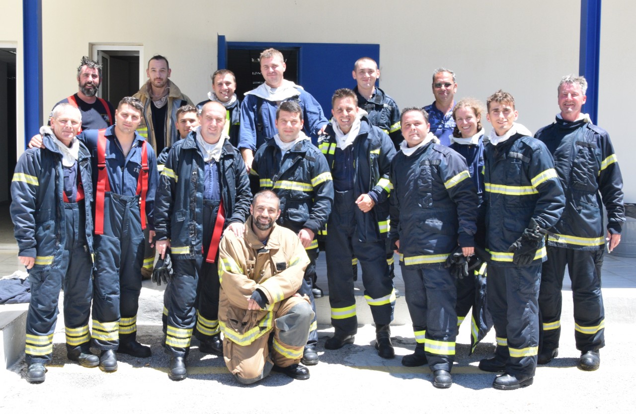 Specialiștii greci în lupta cu focul ne-au propus să participăm, într-una din zile, la un schimb de experiență prin implicarea comună la un exercițiu specific, desfășurat în poligonul școlii lor de profil. Bineînțeles că am dat curs invitației și ne-am prezentat cu grupa noastră de vitalitate, care s-a arătat încântată de ziua petrecută printre omologii eleni, de unde s-a întors cu o nouă lecție învățată în beneficiul ei și al întregii nave.