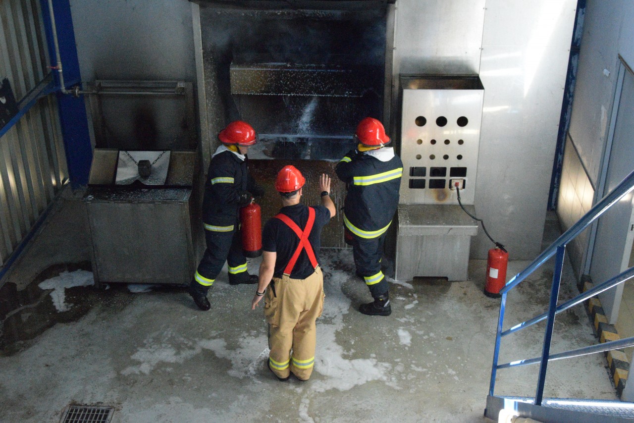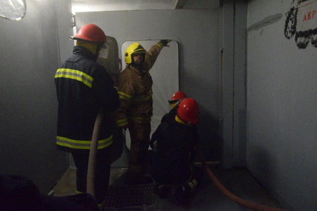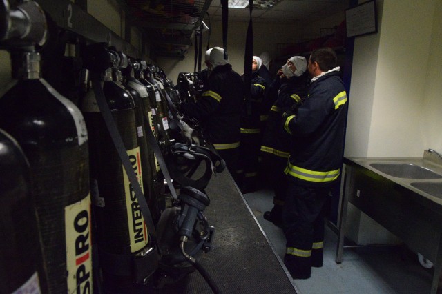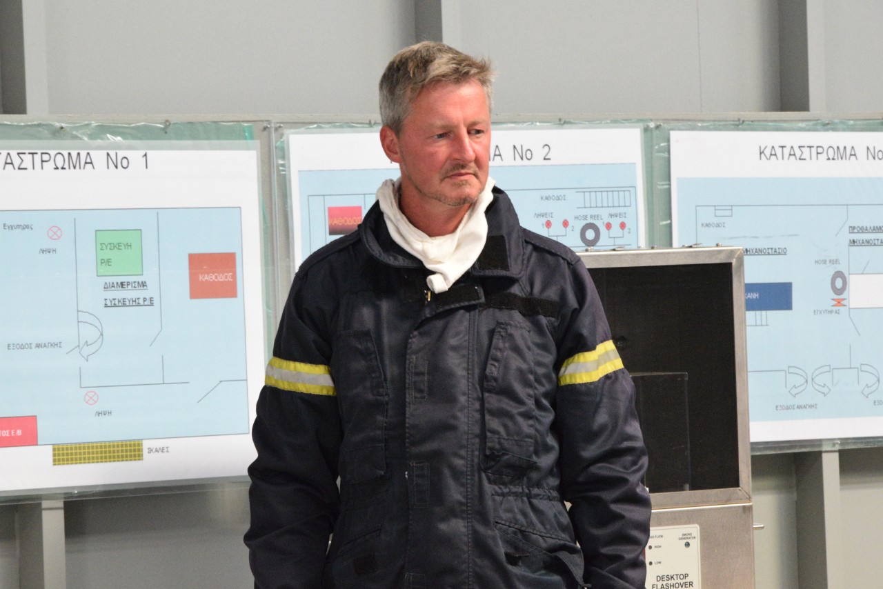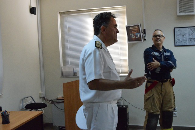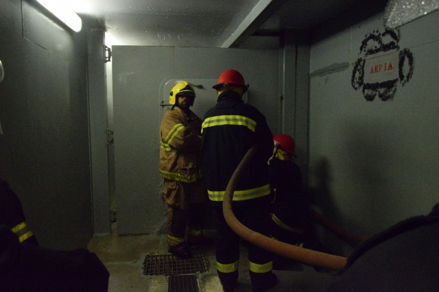 Specialiștii greci în lupta cu focul ne-au propus să participăm, într-una din zile, la un schimb de experiență prin implicarea comună la un exercițiu specific, desfășurat în poligonul școlii lor de profil. Bineînțeles că am dat curs invitației și ne-am prezentat cu grupa noastră de vitalitate, care s-a arătat încântată de ziua petrecută printre omologii eleni, de unde s-a întors cu o nouă lecție învățată în beneficiul ei și al întregii nave.