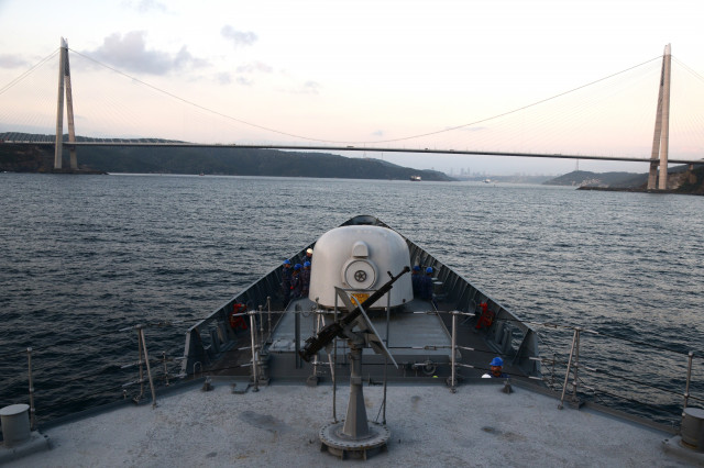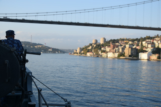 Cea de-a doua zi de marș a debutat cu intrarea navei în strâmtoarea Bosfor (Istanbul), o strâmtoare între Europa și Asia, care leagă Marea Neagră cu Marea Marmara, cu o lungime de aproximativ 30 de kilometri și o lățime maximă de 3.700 de metri. Ulterior, fregata „Regina Maria” – 222 a tranzitat strâmtoarea Dardanele (Çanakkale), situată în nord-vestul Turciei, cu o lungime de 61 de kilometri și o lățime cuprinsă între 1,2 și șase kilometri.