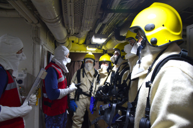 Zilnic, echipajul navei se instruiește prin desfășurarea unor exerciții de vitalitate, esențiale pentru consolidarea pregătirii militarilor în ceea ce privește modul de acțiune în cazul producerii unor incendii sau găuri de apă.