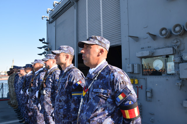 Fregata „Regina Maria” – 222, cu elicopter IAR-330 Puma Naval ambarcat și o grupă de militari de la Forțele pentru Operații Speciale (FOS), a plecat joi, 28 august, din portul militar Constanța, pentru a participa la Operația NATO SEA GUARDIAN, în calitate de navă-comandant de grupare. Fregata este comandată de comandor Mitel-Laurențiu Alexandru și are un echipaj format din 243 de militari. La bord, se află și comandantul grupării navale, comandor George-Victor Durea, cu personalul de stat major ambarcat.