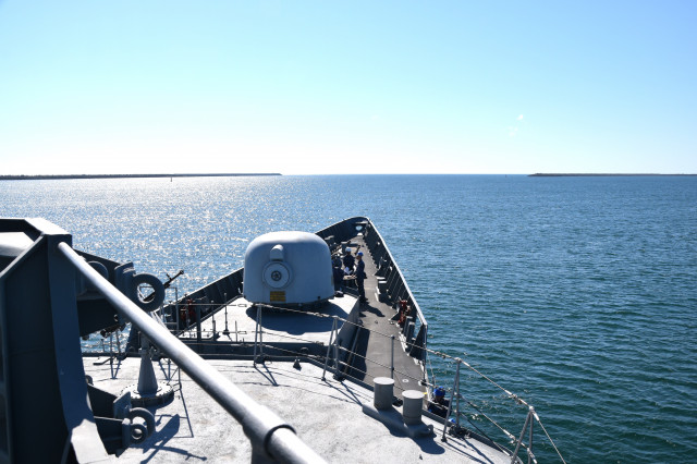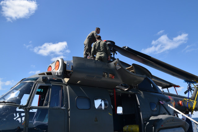 Sâmbătă, 30 august, echipajul navei a continuat programele și modulele de instruire parcurse în zilele precedente, pentru aprofundarea cunoștințelor, iar specialiștii din domeniul aviației au executat, cu elicopterul din organica navei, un zbor tehnic de antrenament.
