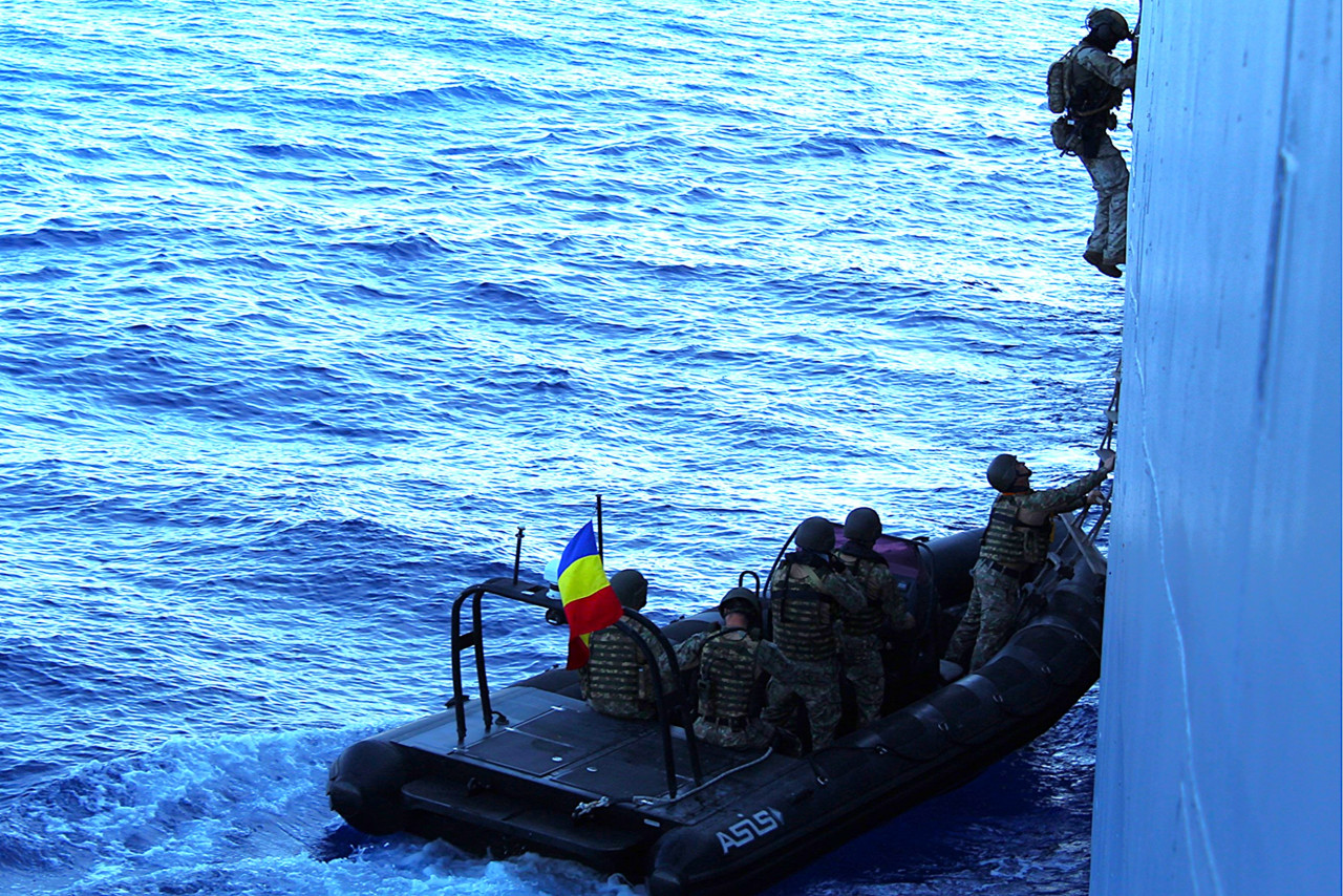 Duminică, 14 septembrie, echipajul fregatei „Regina Maria” a simulat contracararea unui atac de suprafață împotriva unui contact clasificat ca navă suspectă, după ce aceasta ar fi ignorat interogările din partea navei Forțelor Navale Române.