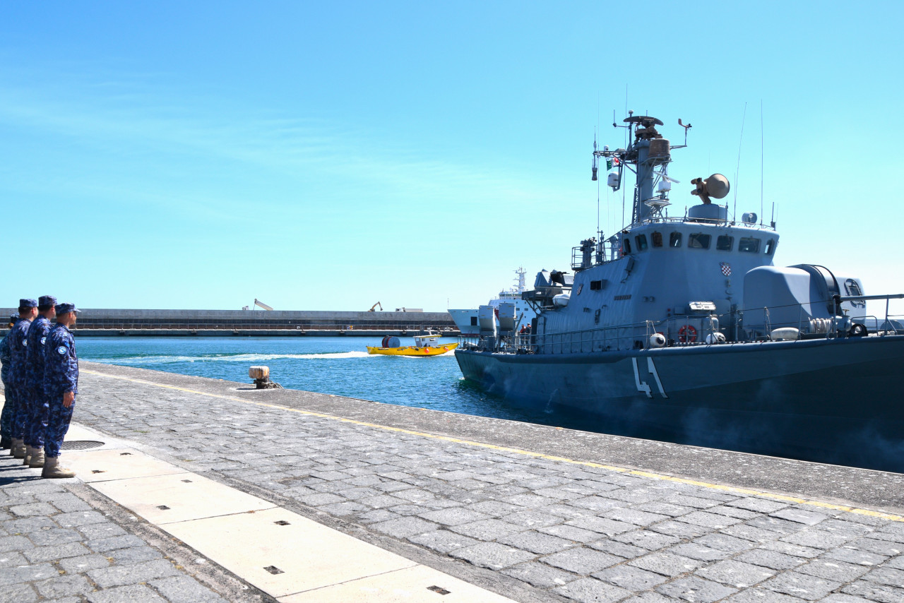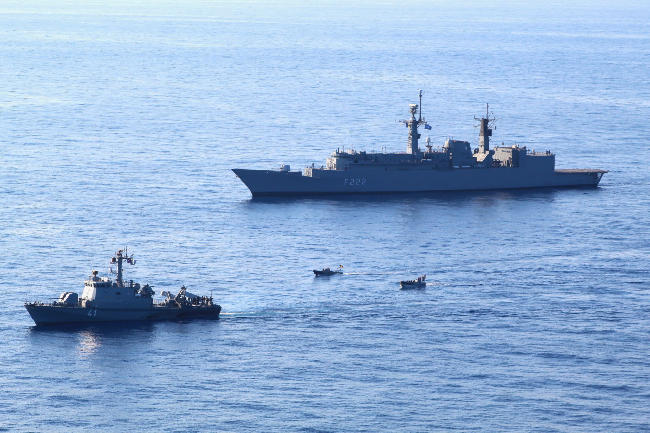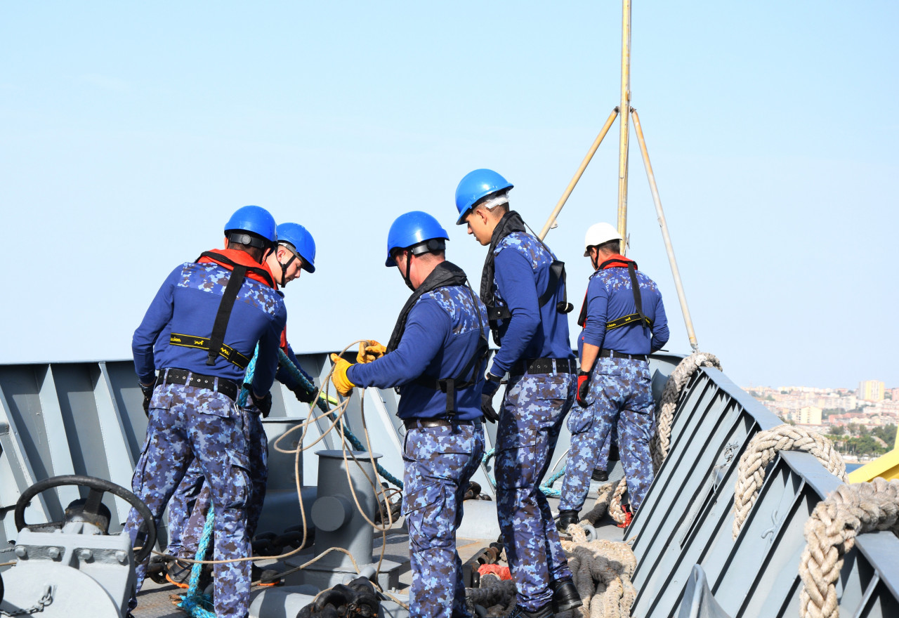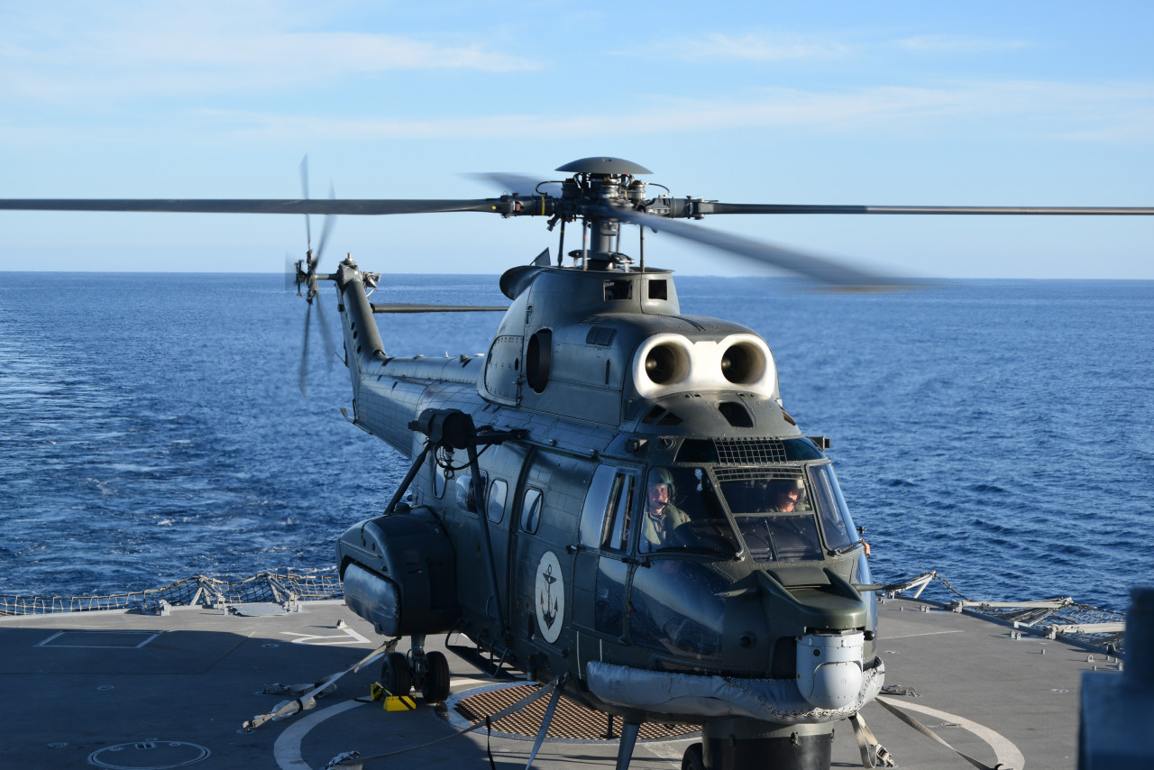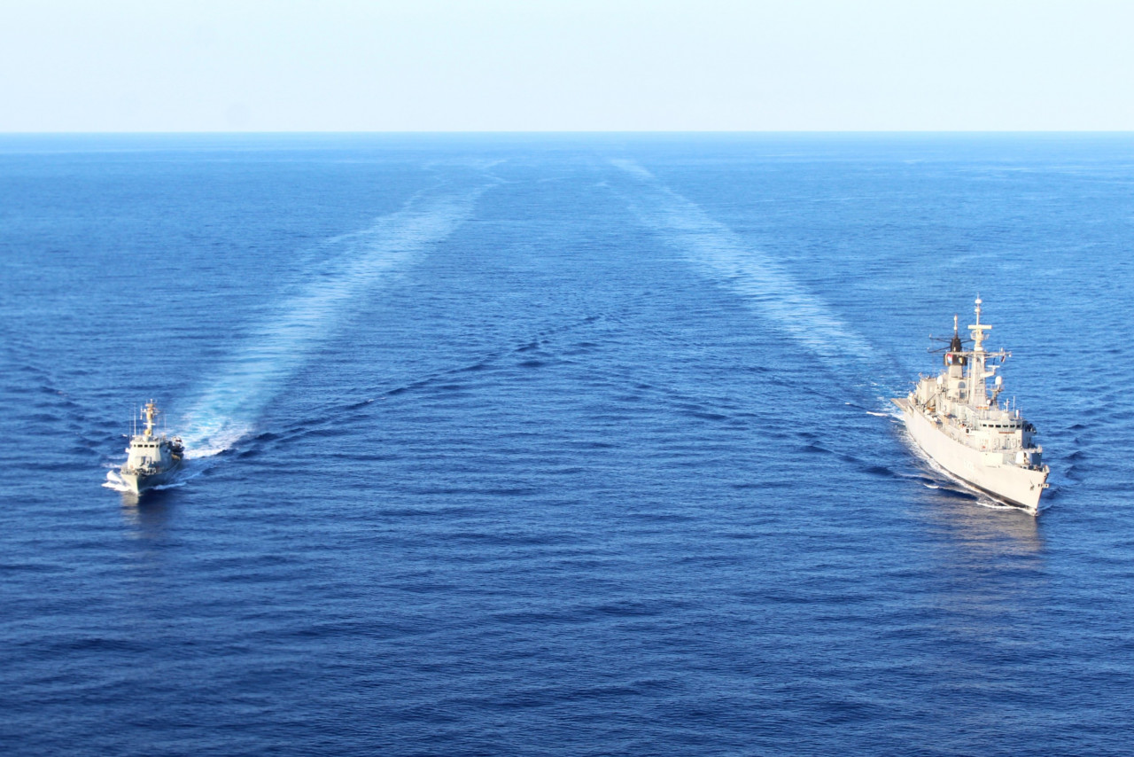 După plecarea din portul sicilian, cele două nave au executat sâmbătă, 13 septembrie, un antrenament comun pe mare, în cadrul căruia echipele de inspecție și control au exersat procedurile specifice domeniului interdicției maritime, prin inserția la bordul celor două nave. În același timp, elicopterul IAR-330 Puma Naval de la bordul fregatei românești a executat misiuni de zbor, pentru monitorizarea situației maritime.