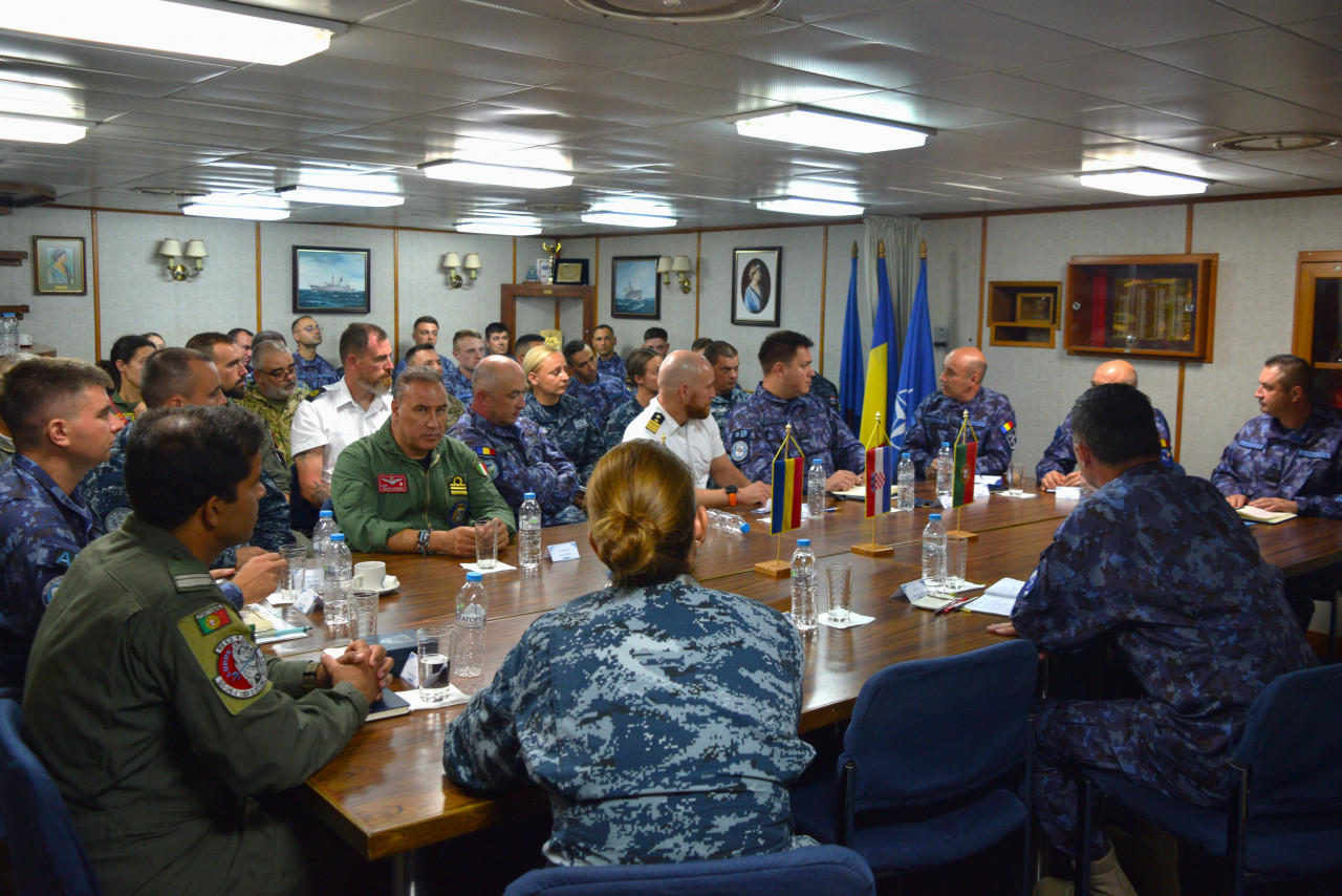 Ședința de coordonare a Operației Sea Guardian a avut loc joi, 11 septembrie, în portul Catania, Italia, în prezența reprezentanților Comandamentului Maritim Aliat (MARCOM – Allied Maritime Command) și ai Forțelor Navale din Croația și Portugalia, dată la care Forțele Navale Române au preluat comanda grupării navale.