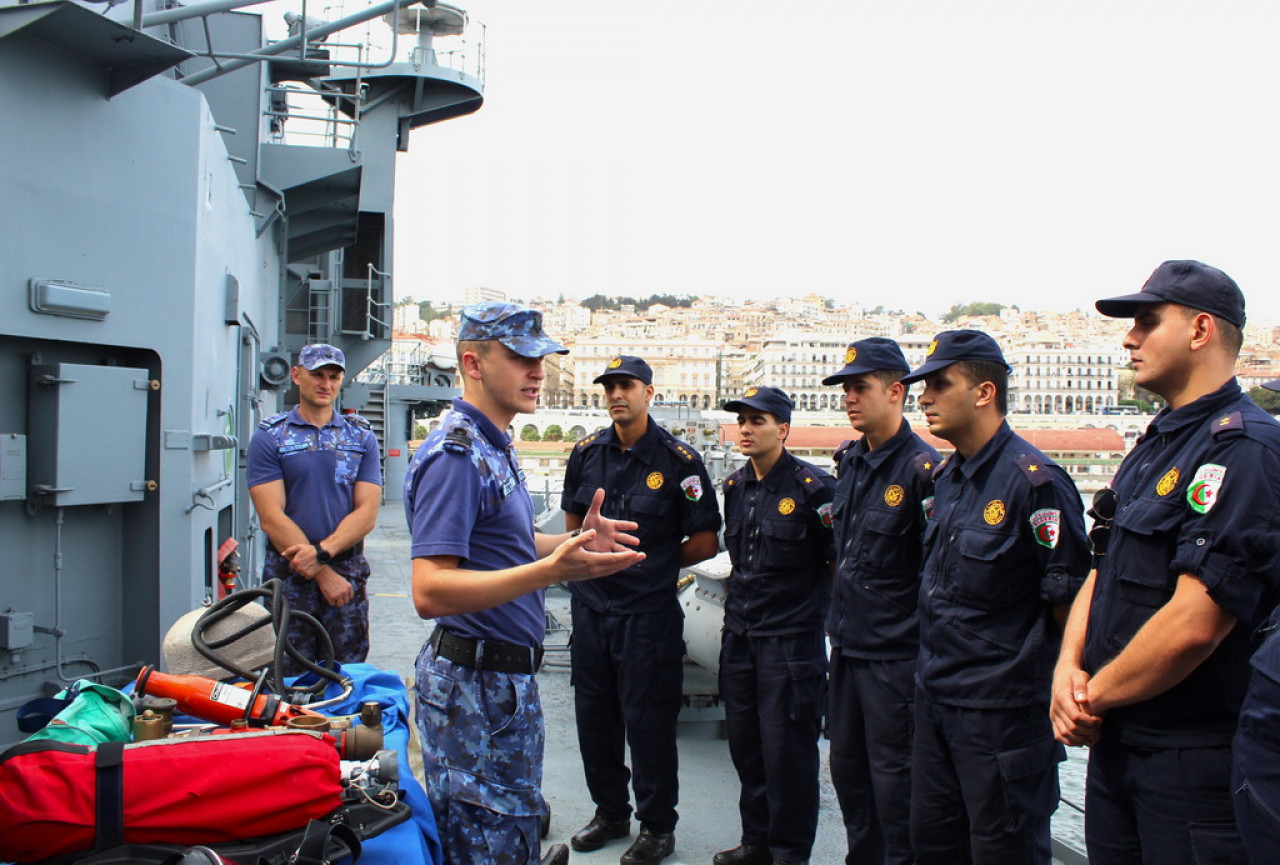 Activitățile din portul algerian s-au desfășurat într-un ritm alert. Astfel, luni, 29 septembrie, comandantul grupării, comandor George-Victor Durea, și comandantul navei, comandor Mitel Alexandru, au efectuat o vizită oficială la sediul Bazei Navale din Alger. În aceeași zi, militari din Forțele Navale ale Algeriei au urcat la bordul fregatei, iar marinarii militari români au prezentat modul de acțiune în caz de incendiu, în cadrul unui atelier de vitalitate, ca parte a misiunii operației de creștere a capabilităților maritime ale partenerilor din regiune.