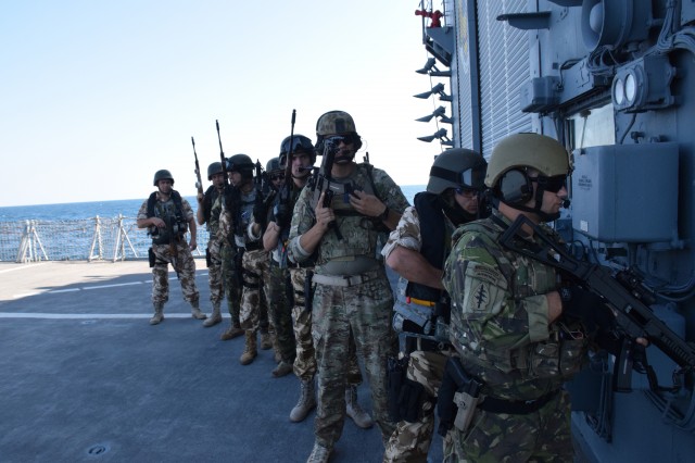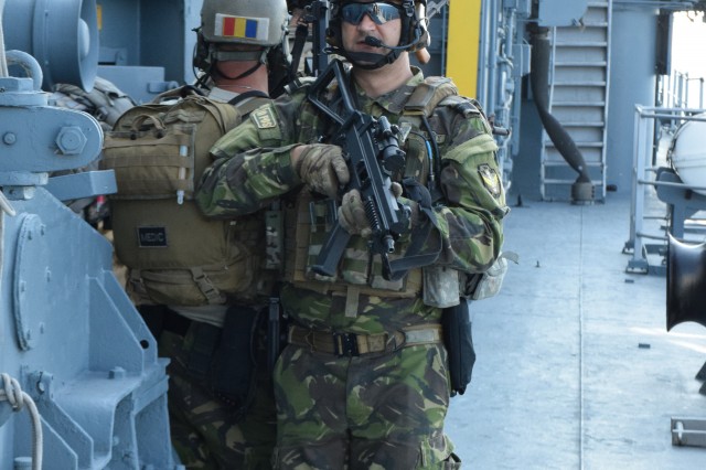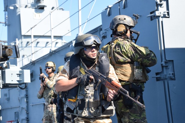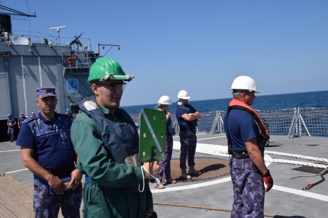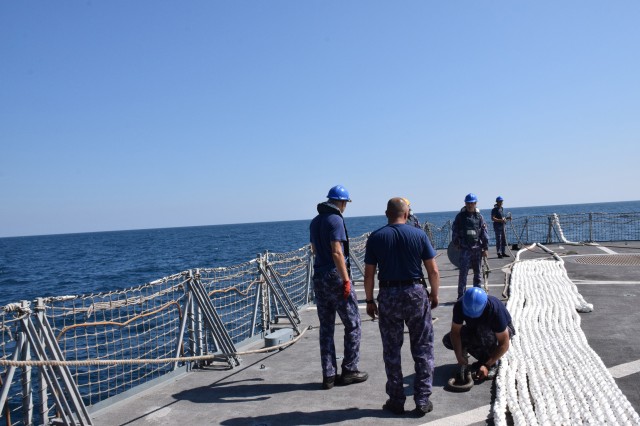 Exercițiul multinațional BREEZE 18 - Exerciţii desfăşurate la bord de către echipajul fregatei "Regele Ferdinand"