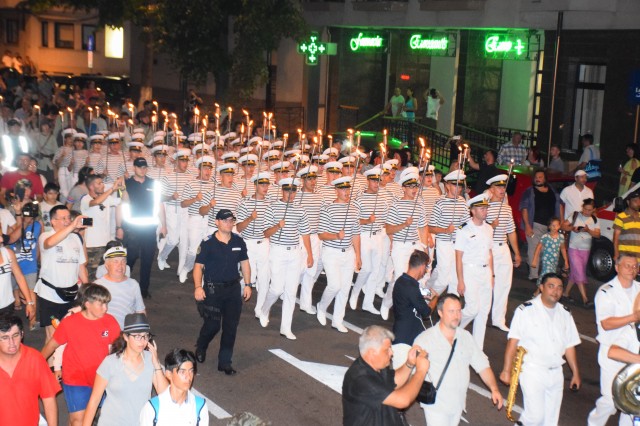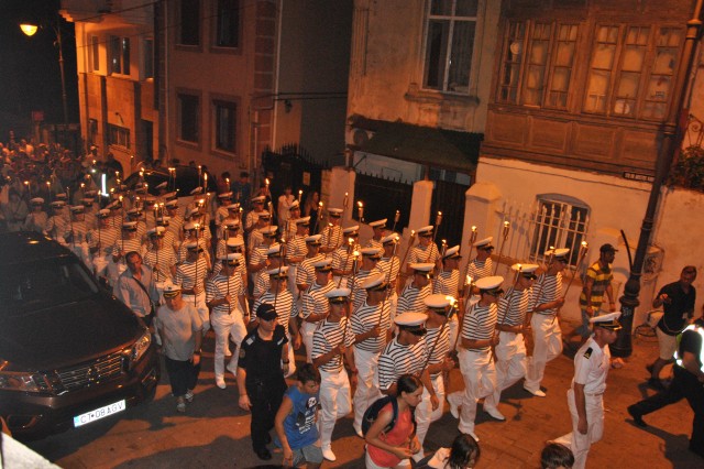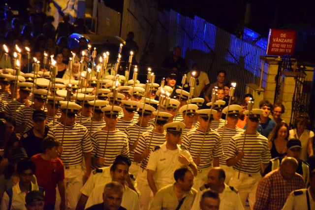 Concert susținut de Muzica Militară a Forțelor Navale, pe faleză, urmat de retragerea cu torțe a marinarilor militari, pe traseul Poarta 1 Port Constanța – Farul Genovez – Parcul Primăriei Municipiului Constanța – Comandamentul Flotei.