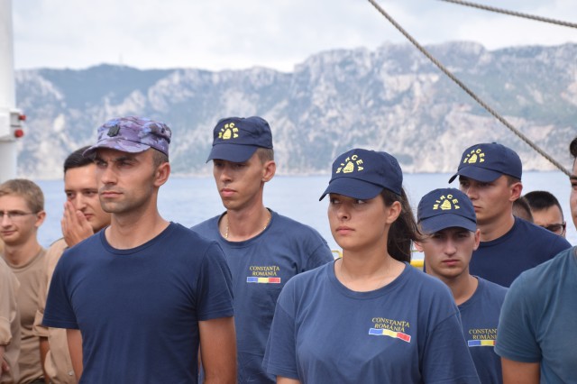 Sâmbătă, prima zi a sfârşitului de săptămână, ne găseşte tot pe mare în navigaţie cu motor în Marea Ionică urcând spre nord-vest. În timpul nopţii am trecut pe lângă insulele Chefalonia, Lefkada, Corfu, destinaţii turistice estivale cunoscute pentru conaţionalii noştri. Deşteptarea, pentru că şi pe navele noastre militare se dă deşteptarea, ne găseşte cu insula grecească Kerkira în tribord pe lângă care am navigat cea mai mare parte a dimineţii.