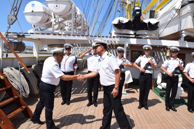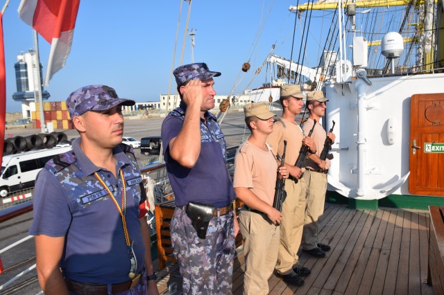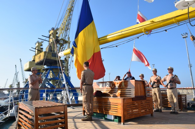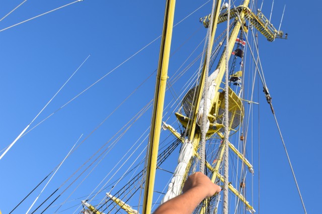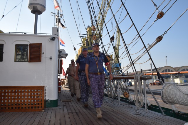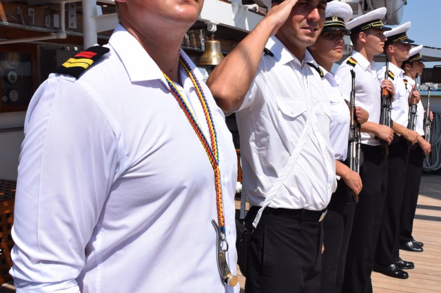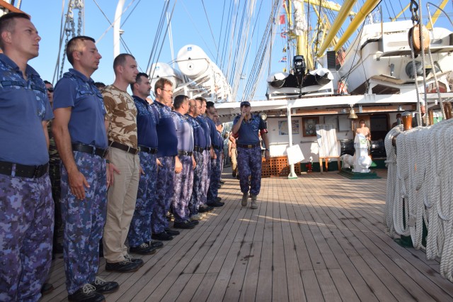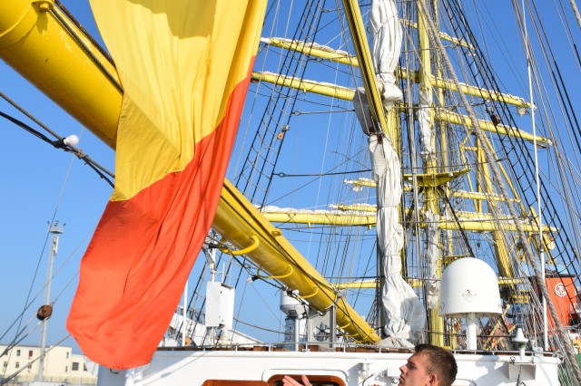 Pe navă, comunicarea se realizează în limba engleză. Toate ordinele, inclusiv cele pentru ridicarea velelor, se dau mai întâi în limba română şi sunt repetate imediat şi în limba engleză. Să nu uităm totuşi că este cel de-al treilea marş în această formulă mixtă, iar şi lucrurile s-au aşezat, fiind tot mai vizibilă evoluția colaborării dintre Forțele Navale Române și partenerii străini.
