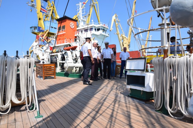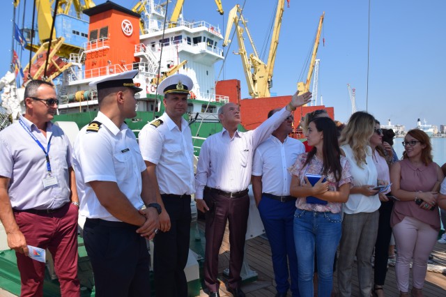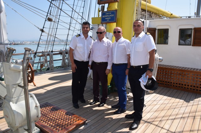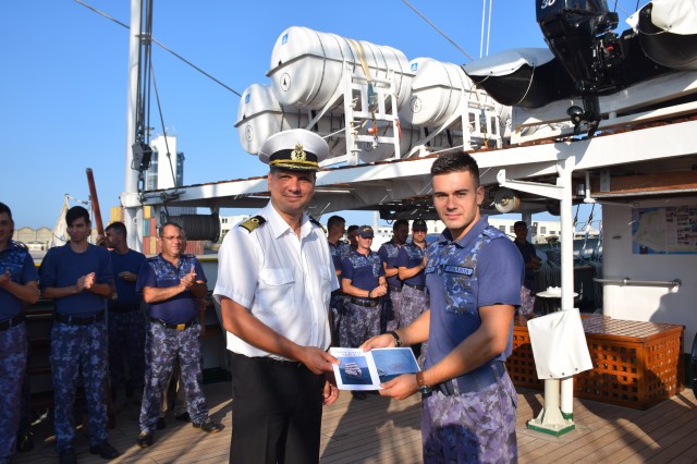 Azi, nava a fost deschisă publicului și am remarcat vizita prefectului din Durres, domnul Ronald Nasto, cu o parte a personalului instituţiei, primiți de comandantul navei, comandorul Mircea Târhoacă. Un alt moment important a fost și prânzul oferit, la bord, autorităţilor militare şi civile din Durres. Atmosfera din elegantul salon de la pupa navei a fost una cu adevărat deosebită, călduroasă şi extrem de prietenoasă. Au participat generalul maior Ylber Dogjani, comandantul marinei însoţit de câţiva colaboratori, prefectul Roland Nasto, fost şef de stat major al marinei militare albaneze şi colonelul Florin Ţuţuianu, ataşatul militar de la ambasada României la Tirana. S-au discutat proiecte de colaborare între cele două porturi, Constanţa şi Durres, de invitare a unor cadeţi albanezi să-şi efectueze practica la N.Ş. Mircea (marina militară albaneză îşi pregăteşte viitorii ofiţeri la acedemii navale din Turcia, Germania, Italia sau Statele Unite ale Americii), de extindere a legăturilor şi colaborării militare şi economice în general. Aşadar, putem afirma că N.Ş. Mircea şi-a îndeplinit şi la Durres misiunea sa de Ambasador al României. Mâine va avea loc, la bord, recepţia oficială unde vor fi prezenţi numeroşi diplomaţi. În rest, lucrurile decurg normal la bord, la fel ca şi pe mare, iar sărbătoritul zilei de ieri, dar care din motive ce au ţinut de programul navei a fost felicitat azi, este caporalul Victor Ghergu, motorist din echipajul de bază al navei, care a împlinit 24 de ani, aici în Durres în Albania.