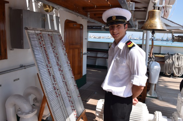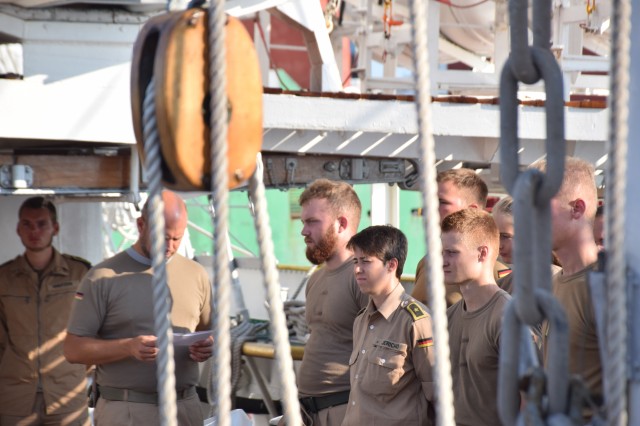 Cadeţii germani, de exemplu, nu urcă în arboradă, dar sunt implicaţi şi ajută la toate manevrele de pe punte la ridicarea şi strângerea velelor. Cadeţii germani studiază noţiuni de meteorologie, învaţă câte ceva despre navele cu vele (istorie, arboradă, clasificare, etc.), au de confecţionat un sac de marinar pe perioada voiajului, învaţă nodurile marinăreşti şi execută lucrări de matelotaj, exersează acordarea primului ajutor, imobilizarea şi transportul răniţilor cu diferite tipuri de tărgi (lucruri pe care le iau foarte în serios) şi sunt interesaţi foarte mult de exerciţiile care ţin de vitalitatea navei (gaură de apă, incendii şi lupta cu focul la bord, exerciţiile de abandon a navei, etc.). De asemenea, fac cart de navigaţie sub supravegherea nemijlocită a trei ofiţeri germani, care dublează carturile noastre de pe navă, dar în principal se ocupă de instruirea propriilor cadeţi.