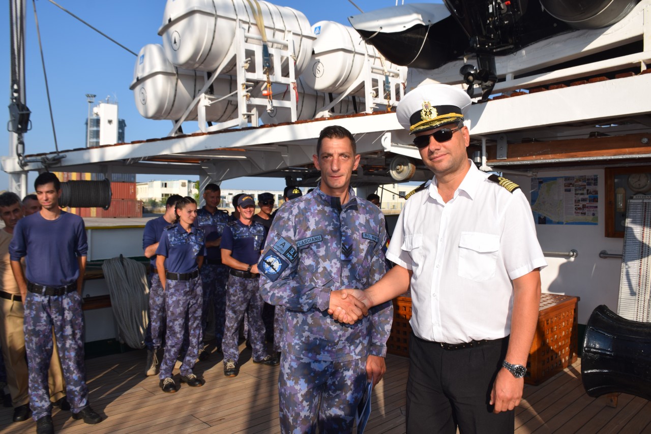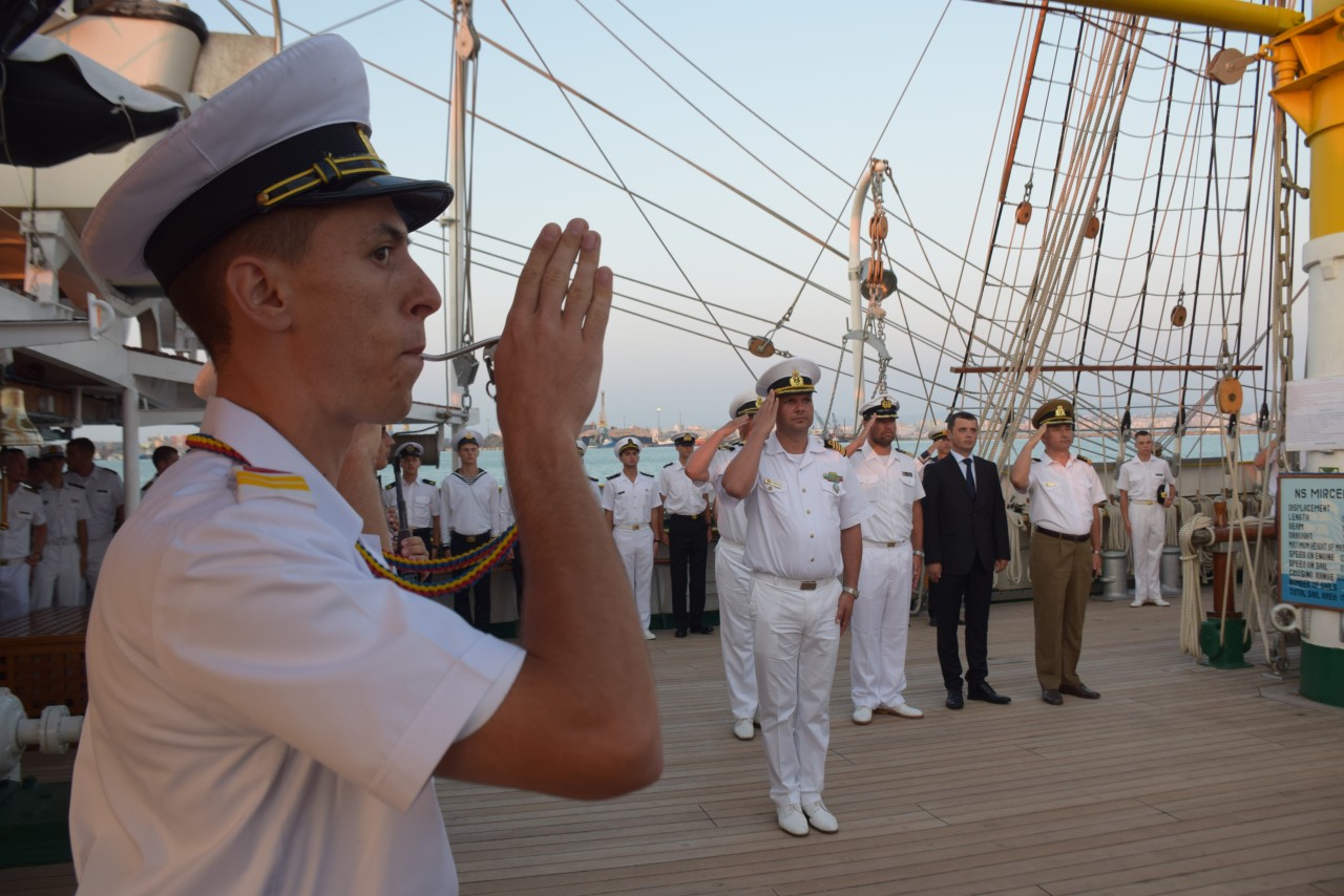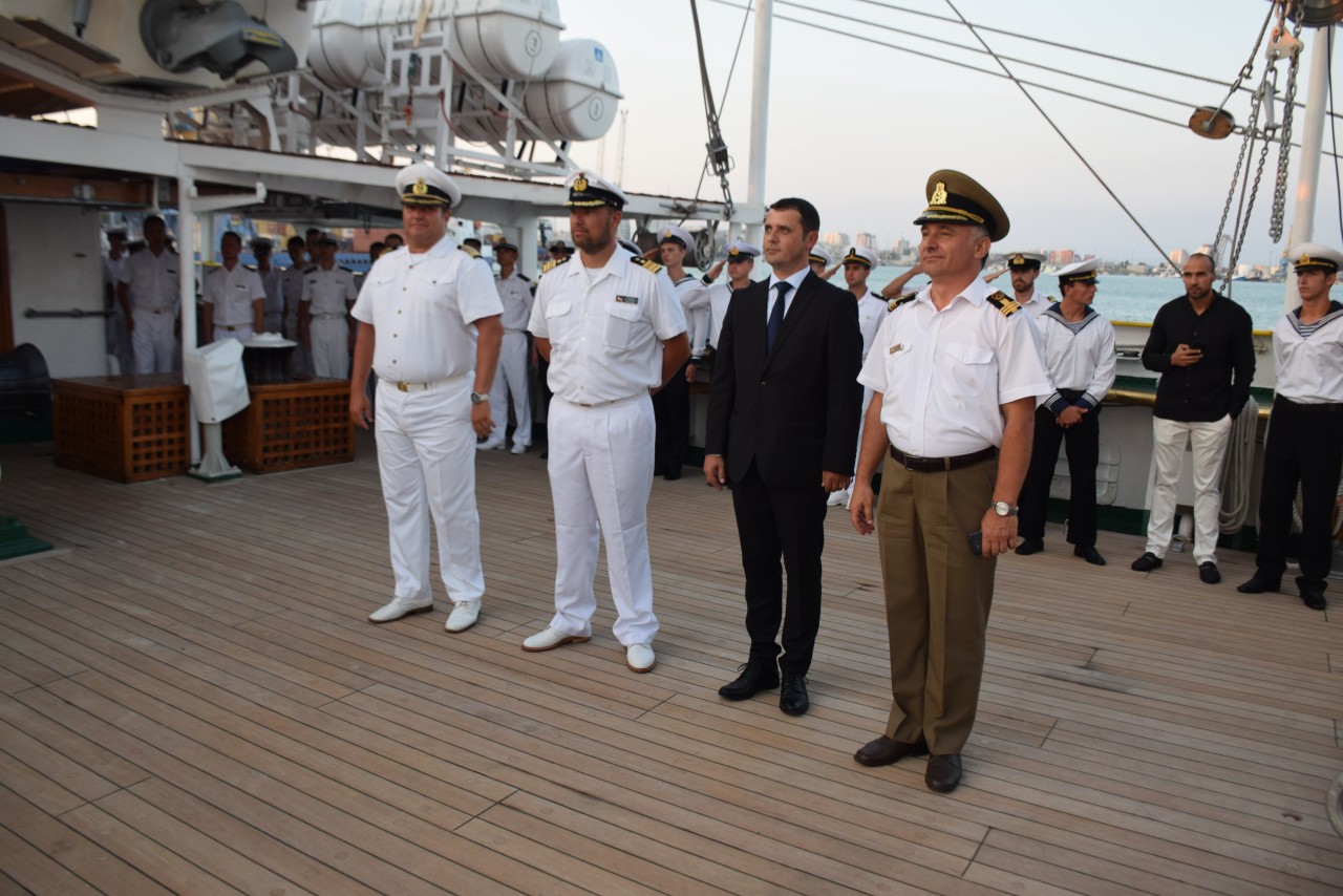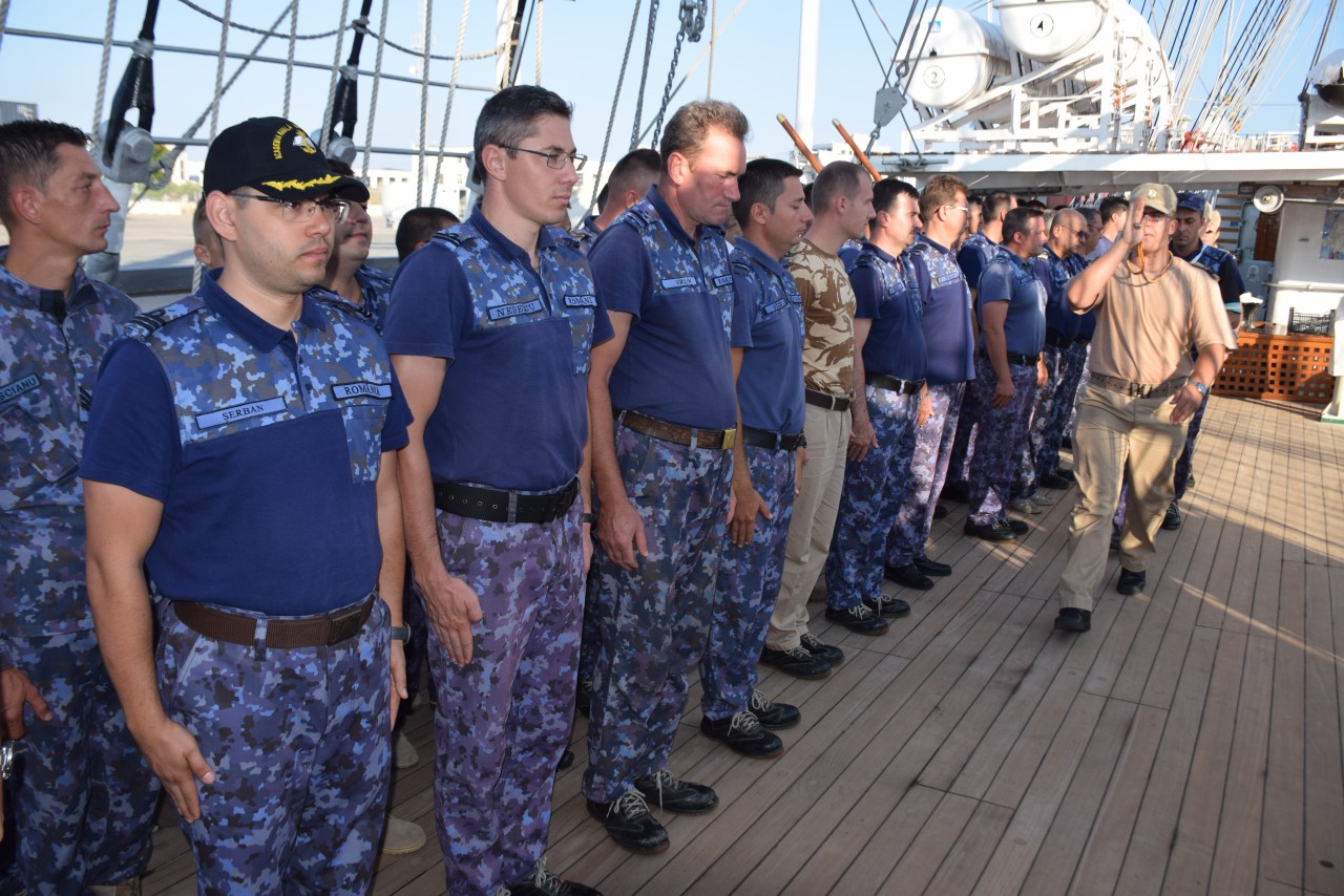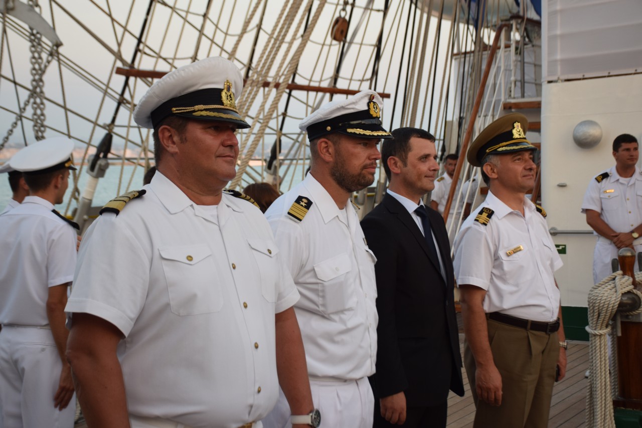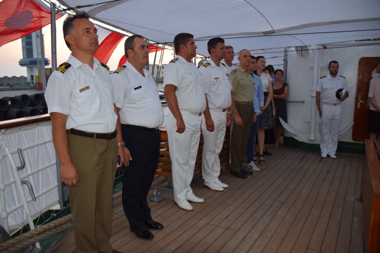 Au vorbit în deschidere colonelul Florin Ţuţuianu, comandorul Gabriel Moise, locotenent-colonelul Hans Peter Wamsler, ataşatul amilitar al Germaniei, iar din partea gazdelor a răspuns generalul de brigadă Nazmi Cahani. Dar sarea şi piperul recepţiei, care a surprins în mod plăcut invitaţii, au fost mini-recitalurile de cântece marinăreşti susţinute de cadeţii români şi străini de la bord. Rând pe rând, s-au perindat pe la microfon cadeţii din Bulgaria, China, Polonia, Marea Britanie şi la sfârşit corul cadeţilor români, aplaudaţi generos de către asistenţă. O idee foarte bună care a „încălzit” rapid atmosfera şi a facilitat socializarea, ieşind puţin dacă vreţi din tiparele oficiale. Mai mult, a fost elementul specific marinăresc – până la urmă recepţia se desfăşoară pe o navă, şi nu pe orice navă, ci pe un velier.