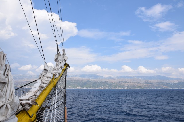 1 septembrie, începutul toamnei calendaristice ne găsește tot în navigație cu motor printre numeroasele insule croate, foarte aproape de Split. După o noapte în care am parcurs 75 de mile de când am ridicat ancora aseară, pe la sud de insula Lastovo, în dimineața aceasta, ziua se anunță cu cer variabil, mai mult noros la răsăritul soarelui, cu 25 de grade în atmosferă și un vânt din direcția est cu trei metri pe secundă. Peisajul este superb, total diferit de insulele grecești sau coasta albaneză, cu insule muntoase și verzi. Navigăm prin arhipeleagul croat Hvarbrak, ocolim insulele Korkula (a șasea insulă ca mărime din Croația supranumită și „Micul Dubrovnik” în care se află presupusa casă în care s-ar fi născut Marco Polo) și Hvar prin nord-est și apoi prin canalele Viski și Hvarski prin nordul peninsulei Peljesac, intrăm prin canalul Braci, în rada Splitului sau canalul Split cum mai apare pe hărți.