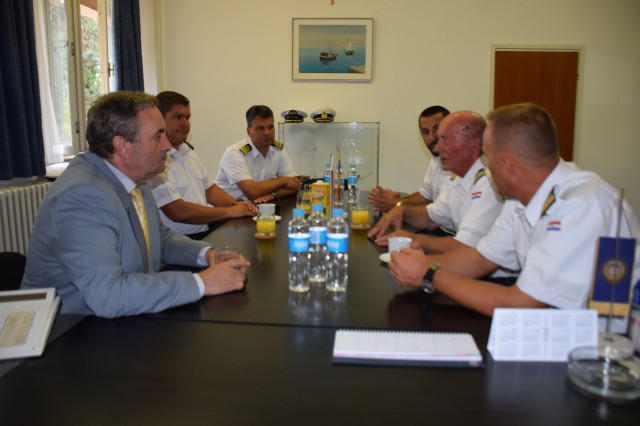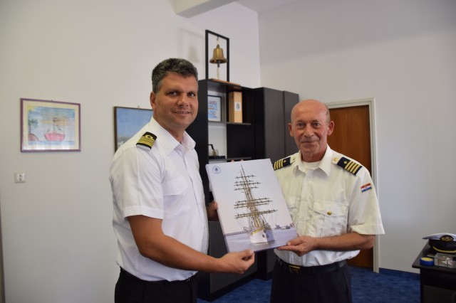 Prima oprire a delegației române - alcătuite din comandorul Gabriel Moise, comandantul marșului, comandorul Mircea Târhoacă, comandantul navei, Aurel Georgescu, consulul României la Zagreb (din păcate nu există atașat militar al României în Croația, de această țară răspunde atașatul din Budapesta) și doamna Alina Danet, funcționar consular de la consulatul nostru onorific din Split – a avut loc la Centrul de pregătire al Forțelor Navale Croate, unde am fost primiți de comandorul Ivan Vukovic, comandantul centrului. A fost un bun prilej de cunoaștere reciprocă, a sistemului de pregătire a cadeților, diferit de cel din România.
