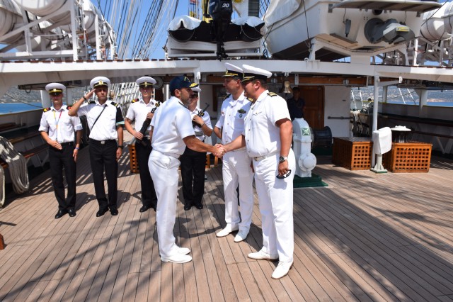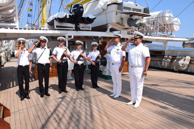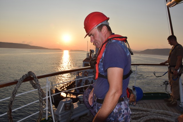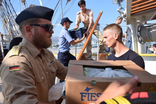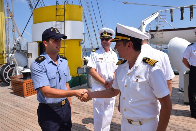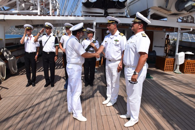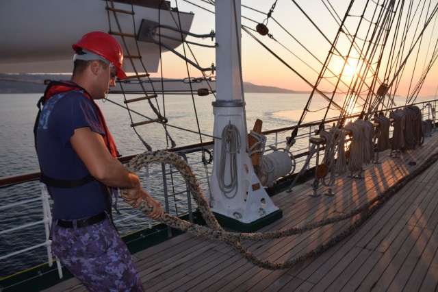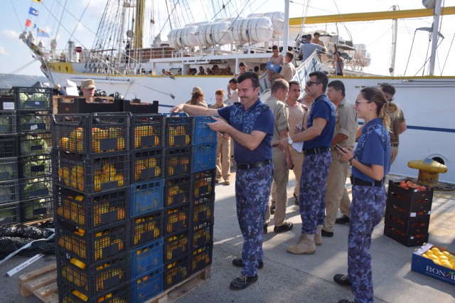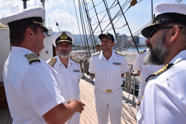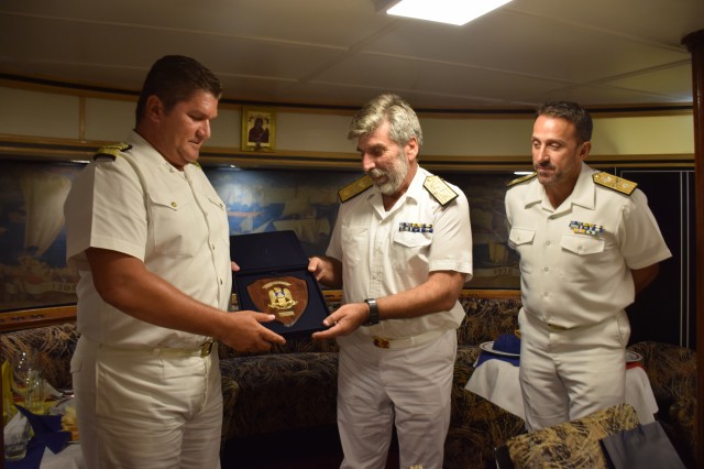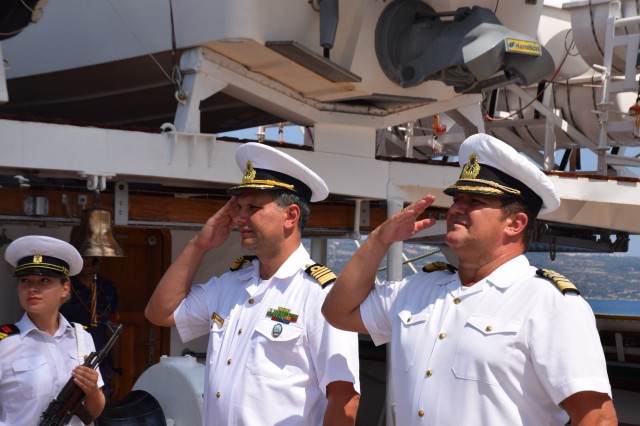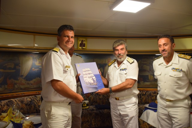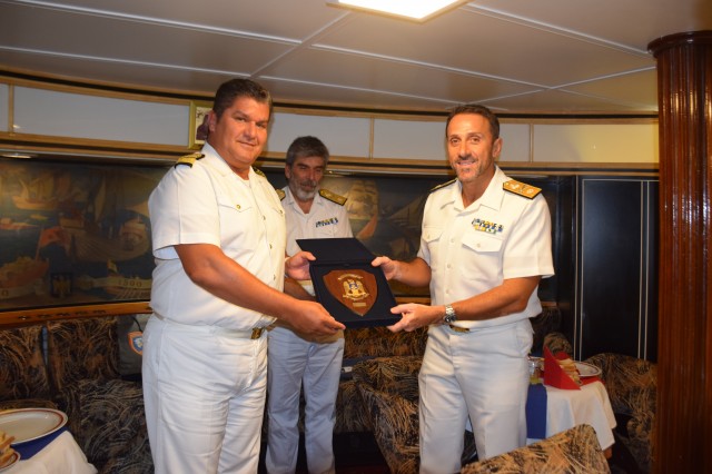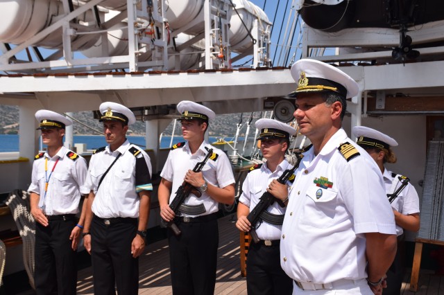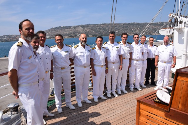 La ora opt, suntem acostați cu toate legăturile la cheu. Vom rămâne aici, în Souda, timp de patru zile, urmând să plecăm spre țară, pe data de 14 septembrie, la ora 10. Un program lejer pentru navă și echipaj, fără vizitarea velierului de către turiști sau populație și fără recepție la bord. Azi, chiar în prima zi, comanda navei și a marșului a oferit un prânz oficial pentru o delegație de la centrul NMIOTC, amintit mai sus, formată din comodorul (contraamiralul de flotilă) Stelios Kostalas, comandantul centrului, comandorul Erturk Avci, din Marina Militară a Turciei, locțiitorul comandantului, comandorul Charalampos Thymis, șeful de stat major, căpitan-comandorul Theodoros Papadakis, directorul Educației și Instrucției, locotenent-comandorul Robert Kahsin din Marina Militară a Poloniei, instructor în cadrul directoratului Educație și Instrucție și instructorul bulgar din cadrul aceluiași directorat. De remarcat este prezența ofițerilor din centru, care au cadeți la bordul N.Ș. Mircea și pe care au avut, astfel, oportunitatea să-i întâlnească. De la baza navală din Souda au onorat invitația comodorul (contraamiralul de flotilă) Georgios Agrafiotis, comandantul bazei și căpitan-comandorul Ioannis Tsolakis, comandantul bazei de suport logistic înaintat Souda. Și, desigur, a fost prezent la bord ofițerul român din cadrul centrului, locotenent-comandorul Andrei Scripcă. Am detaliat puțin componența delegațiilor deoarece există legături speciale de prietenie aici, la Souda, de foarte multă vreme, între marinarii militari români și gazdele noastre, fie din Forțele Navale ale Greciei, fie din personalul militar internațional din compunerea centrului, îmbogățite la fiecare escală a unei nave a Forțelor Navale Române. Este inutil să mai precizez atmosfera cordială în care s-a desfășurat vizita și prânzul oferit aici de N.Ș. Mircea. Urmează ca echipajul și cadeții să viziteze, miercuri, această facilitate, așa cum s-a întâmplat și anul trecut. O bună parte a zilei trece cu ambarcarea alimentelor la bord, preț de câteva ore, camioanele sosesc pe rând, iar lanțul uman al cadeților duce alimentele de pe cheu până în cambuza navei, după ce în prealabil este recepționată și verificată. Urmează și refacerea plinului la motorină, dar în altă zi. În rest, echipajul este liber să se recupereze după ultima săptămână pe mare, fie în Souda, unde nu e mare lucru de văzut sau de făcut, fie în Chania, aflată la o distanță de șase kilometri sau oriunde pe frumoasele plaje ale insulei Creta.