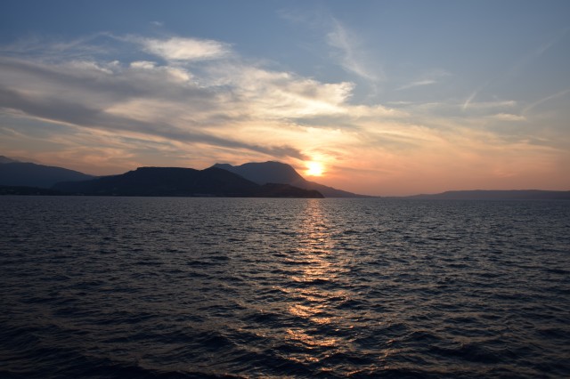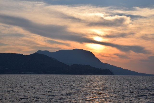 „La posturile de manevră! Manevra prova la post! Pregătiți ancora de fundarisire!”, asta auzim prin stație la ora 17.50. Am ajuns la destinație în Insula Creta și ancorăm în Golful Kalyvion, la o milă nord de țărm. Fundarisim ancora babord cu trei chei de lanț pe un fund de 23 de metri. Suntem la doar cinci mile distanță de Souda, destinația noastră finală, mai adânc în interiorul golfului cu același nume și unde, de mâine, va începe ultima escală a marșului. După ancorare, în momentele libere de după masa de seară, maistrul militar principal Ionuț Comună își încearcă norocul la undiță. Din prima aruncare scoate un biban de mare, dar reușește performanța, tot din prima, să-l scape înapoi în mare! Altul nici nu a mai prins! La pupa, pe nava, acum, mult mai liniștită în lipsa sunetului motorului principal - care s-a auzit neîntrerupt în ultimele trei zile – căpitanul Sergiu Șerban, împreună cu cadeta poloneză Alicja Zejmo și bulgarul Nikolay Petrov, ambii cart la navigație, la care s-au mai alăturat și britanicii Neil Connell și Callum Tapper, iau înălțimea la soare și calculează ora apusului, folosind sextantul și cronometrul de navigație. O scenă tipică aici la bord, la ora crepusculului, pe mare sau la ancoră.