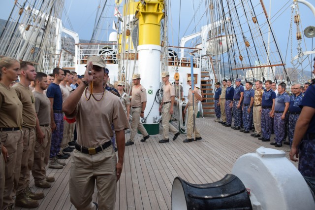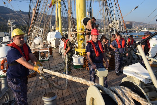 Avem parte de răsărituri superbe, aici în Souda, în fiecare dimineață, în timpul adunării de dimineață. Azi am ambarcat motorină la bord și ultimele alimente. Suntem în a treia zi de escală și tot echipajul se bucură de tot ceea ce poate oferi insula Creta, chiar dacă dimineața aceasta este înnorat și plouă puțin. Tot azi, a fost verificată și șalupa, lăsată la apă de ieri. Timp de aproape o oră am brăzdat apele Golfului Souda în toate regimurile de viteză și diferite manevre. Fiind utilizată mai rar la bord, este bine să fie verificată atunci când avem posibilitatea, la fel și manevra de coborâre și ridicare a șalupei, unde marinarii trebuie să cunoască și să fie familiarizați cu manevra respectică.
