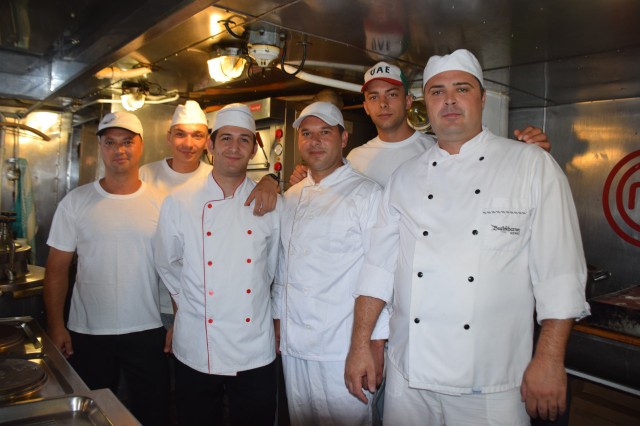 Dar cine sunt ceilalți bucătari? Caporalul Alexandru Giol este detașat de la o unitate din Brăila (apreciat acolo, colegii de unitate nu se bucură deloc când pleacă în misiune cu N.Ș. Mircea), bucătar cu experiență, dar poate ține foarte bine și funcția de ospătar. Mai este fruntașul Silviu-Gigel Pană detașat de la Mangalia, a fost în marș și anul trecut cu nava, tunar la origine. Urmează caporalul Leonard Cionca, tot brăilean și tot de același „calibru” ca și Giol la capitolul seriozitate, apoi doi oameni ai bordului, caporalii Vasile Gheorghe, bucătar pe funcție, și Mihai Pantalon, ospătar la origine, dar deja bucătar cu experiență acum.