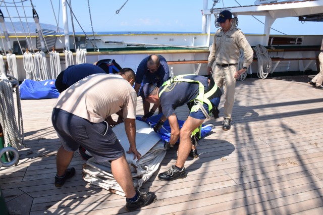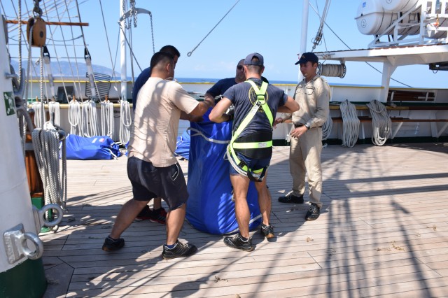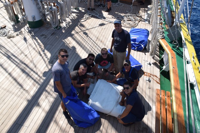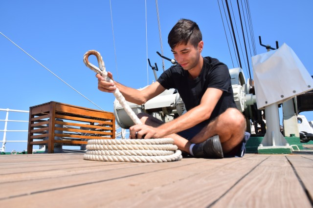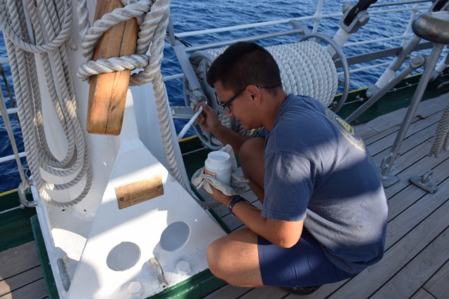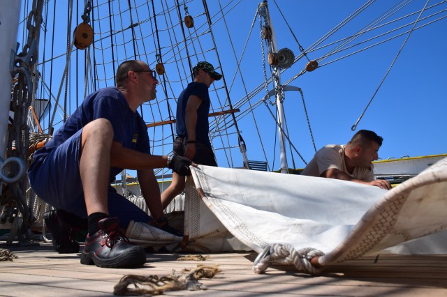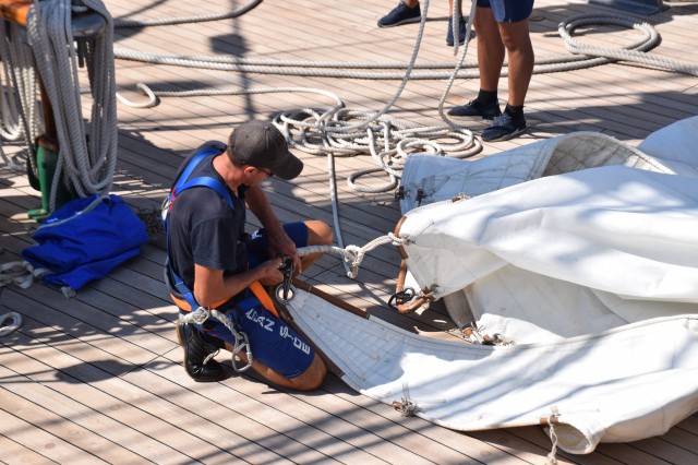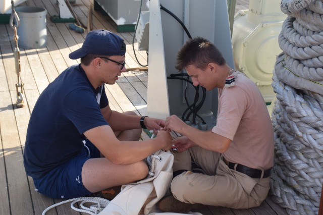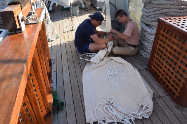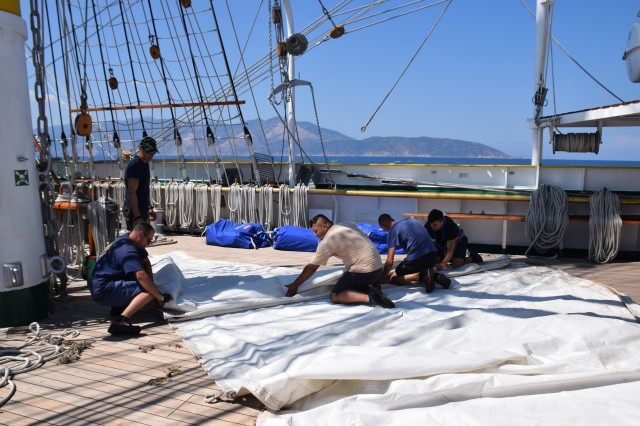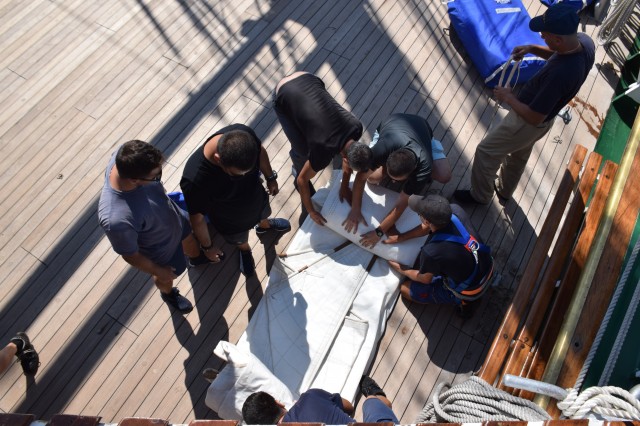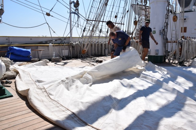 Cadeții sunt preocupați să-și finalizeze lucrările de matelotaj, pentru că se apropie examenul de practică. Ca de obicei, fetele sunt cele mai silitoare. Pe puntea Dunetă, Ioana Brumă și Corina Liră sunt deja la a doua lucrare, ca să-și mai umple timpul. Băieții „bagă mare” pe ultima sută de metri, peste tot pe navă lucrează de zor la legăturile de la hamace sau la celelalte lucrări repartizate. Câțiva dintre ei au avut de realizat sau de refăcut parâme, gașe, patronări sau lucrări de piturare la diferite echipamente, sub supravegherea directă a maiștrilor militari Alexandru Mihai, pe dunetă, Marian Vârlan, Marius Tomiță, la puntea centru sau la „atelierul de matelotaj” al maistrului Ionuț Comună. Au mai rămas doar cinci zile până la finalul marșului.