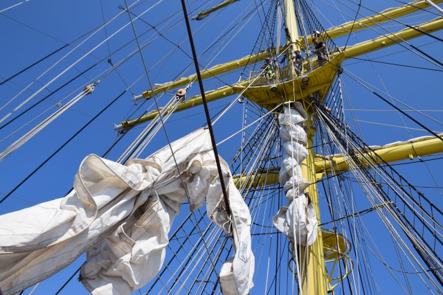 La bord, a început dezvergarea velelor, o muncă de echipă, care necesită participarea multor membri din echipaj. Este și motivul pentru care se întâmplă acum, în timpul marșului, când echipajul este complet și nu după sosirea la Constanța. Azi sunt dezvergate (adică velele sunt date jos de pe vergă), velele triunghiulare (straiurile, focurile, dar și contraranda și picul) sunt strânse, împachetate și introduse în sacii de depozitare, înainte de a fi transportate în magaziile navei. Urmează ca luni să facem același lucru și cu velele pătrate de pe cele două faruri. Este o muncă mai ușoară acum de când nava are vele sintetice din dacron, comparativ cu velele grele, vegetale, din anii trecuți, care necesitau un efort fizic intens din partea echipajului. Așadar, toată ziua, pe toate cele trei punți ale navei, paralel cu gabierii din arboradă, echipajul a coborât, a strâns, a împachetat și a depozitat aceste vele triunghiulare, dar și o parte din manevrele mobile, macarale, parâme, cavile etc. Aspirantul Laura Zburlea, ofițerul cu manevra velelor, supraveghează operațiile, parcă deja îngrijorată de viitoarea învergare de anul viitor sau, mai exact, de gabierii și maiștrii de la cele două faruri, care se vor mai regăsi pe puntea velierului vara viitoare. Sărbătoritul zilei este caporalul Mihai Pantalon, bucătarul și ospătarul bordului. Acesta este de nerecunoscut la adunarea de la ora 16, în uniforma de instrucție și nu în cea albă de bucătar, la momentul felicitării lui de către comandantul navei cu prilejul împlinirii vârstei de 25 de ani, aici, în Strâmtoarea Kafirea.