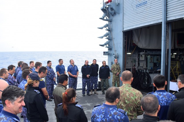 Fregata „Regele Ferdinand” desfășoară, în această perioadă, misiuni de supraveghere a traficului naval în Marea Mediterană, în cadrul Operației NATO Sea Guardian. Aceste misiuni constau în monitorizarea traficului maritim de mărfuri, împreună cu celelalte nave din gruparea navală, prin mijloace de observare radiotehnice, dar pot fi executate și misiuni de inspecție și control la bordul navelor civile, acestea având un grad ridicat de risc.