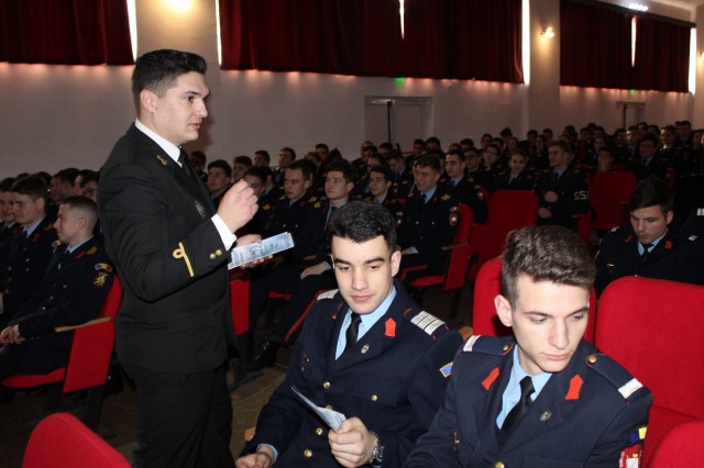 Alegerea unei cariere în Forţele Navale şi paşii care trebuie urmaţi pentru a parcurge acest drum au fost subiectele discutate de către reprezentanții Flotilei Fluviale cu elevii Colegiului Naţional Militar Dimitrie Cantemir”, Breaza, în cadrul activităţii de consiliere şi orientare în viitoarea formă de învăţământ militar.