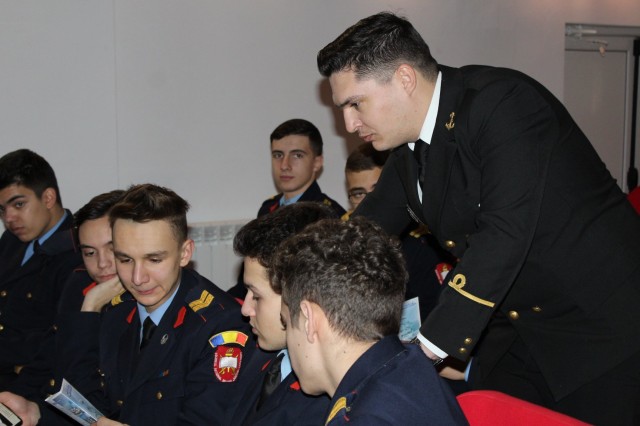 Luni, 28 ianuarie, liceeni au avut posibilitatea să primească de la foști elevi ai colegiului, astăzi ofiţeri în cadrul Forțelor Navale Române specializaţi în domeniile lor de activitate, toate informaţiile necesare pentru a lua în considerare ca opţiune de viitor, Marina.