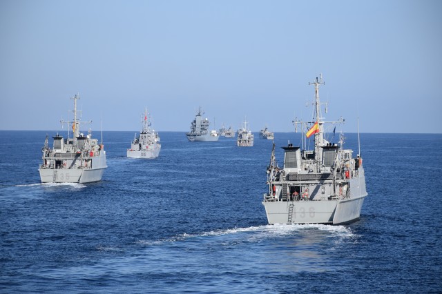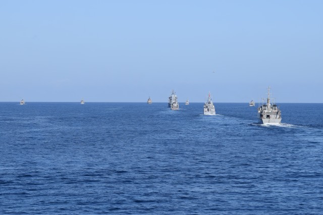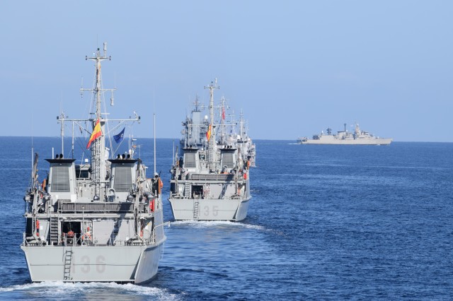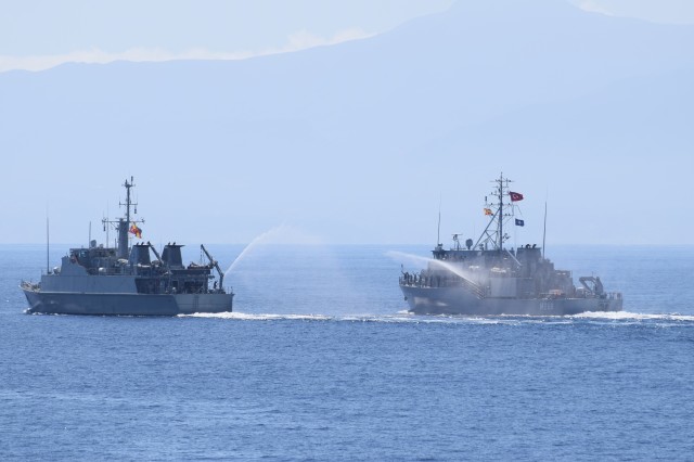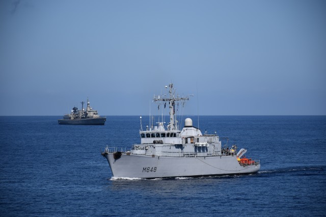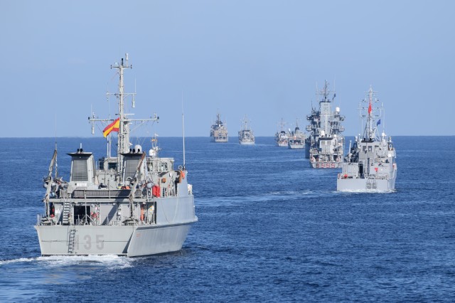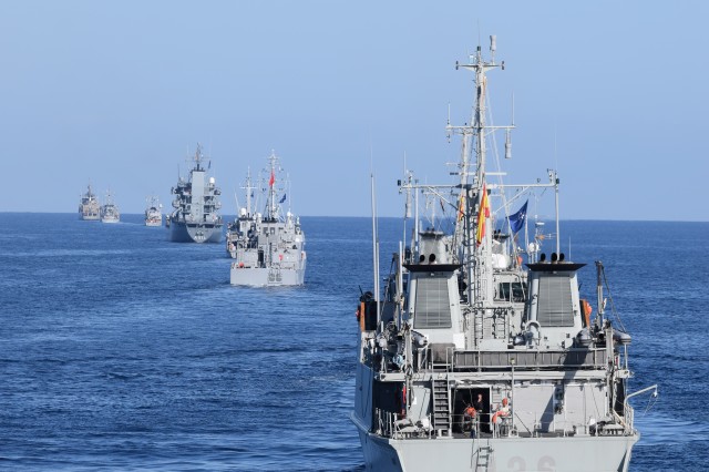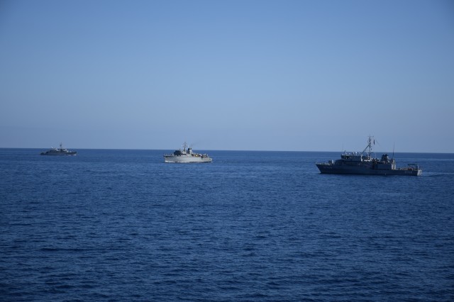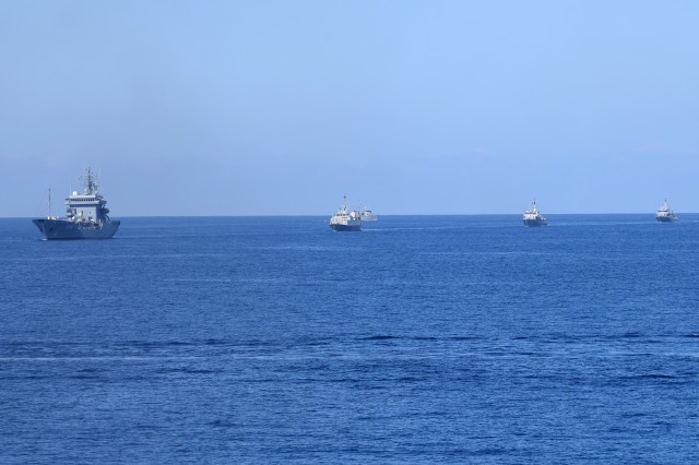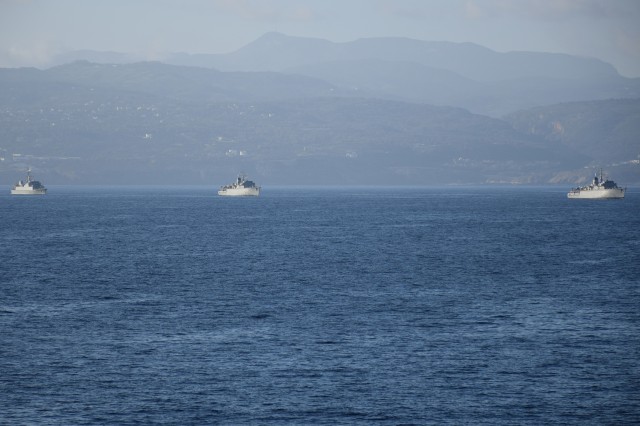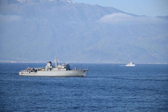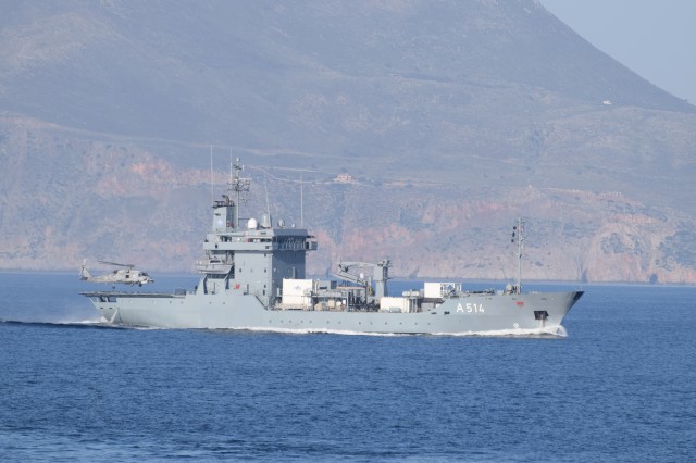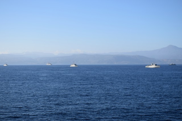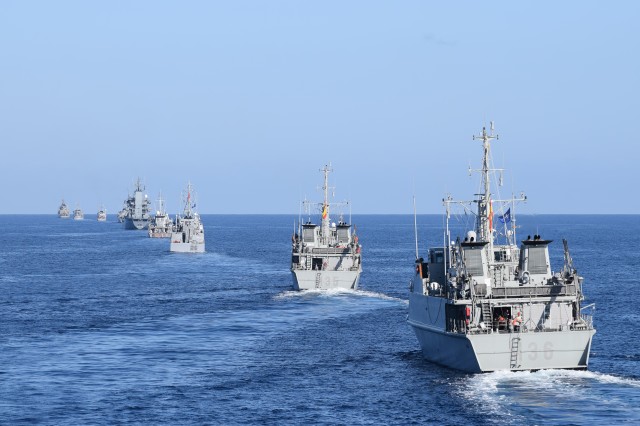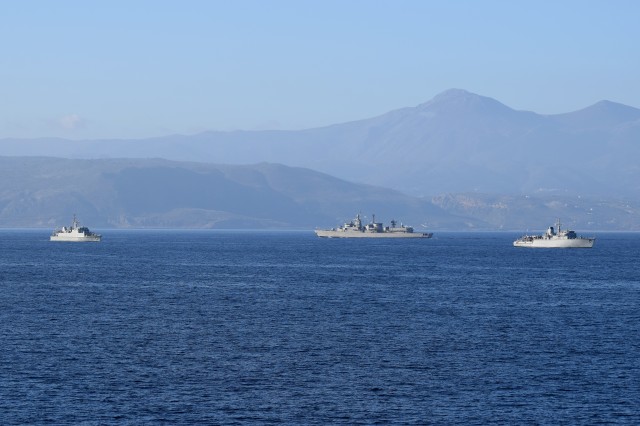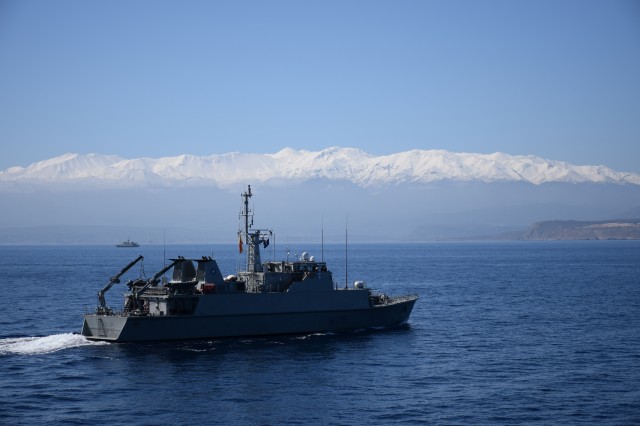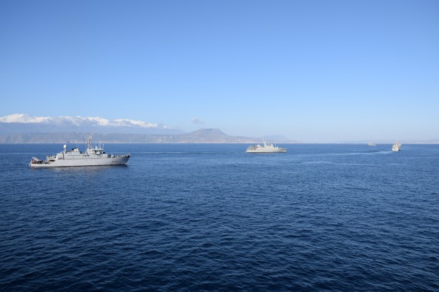 Nava Maritimă Hidrografică „Cpt.cdor. Alexandru CĂTUNEANU” a executat marți, 19 martie, manevre și evoluții în formație și exerciții de fotografiere pe mare (PHOTEX), împreună cu alte 12 nave NATO, în apropierea insulei Creta, Grecia.