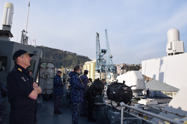 Gruparea navală NATO va desfășura, până la data de 18 aprilie, misiuni de supraveghere maritimă în Marea Neagră, pentru întărirea măsurilor de descurajare a provocărilor la adresa securității în regiune, dar sunt prevăzute și escale în porturile Trabzon (Turcia), Constanța și Poti (Georgia), pentru refacerea capacității de luptă.