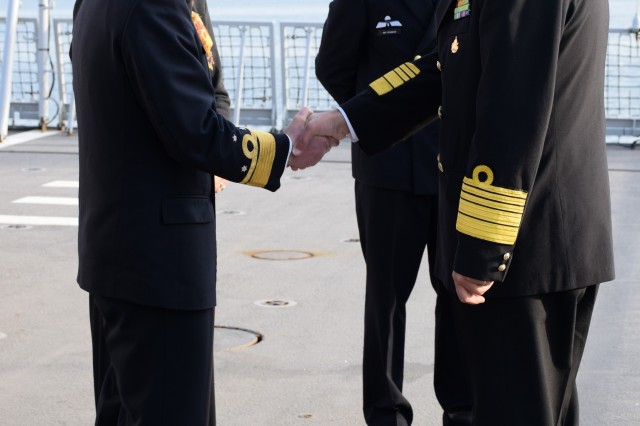 Luni, 8 aprilie, comandantul Forțelor Navale Regale ale Olandei s-a ambarcat la bordul fregatei HNMLS „Evertsen” și a fost prezent la secvențele Exercițiului „Sea Shield 19”, desfășurate pe mare.