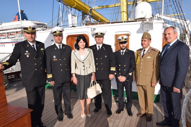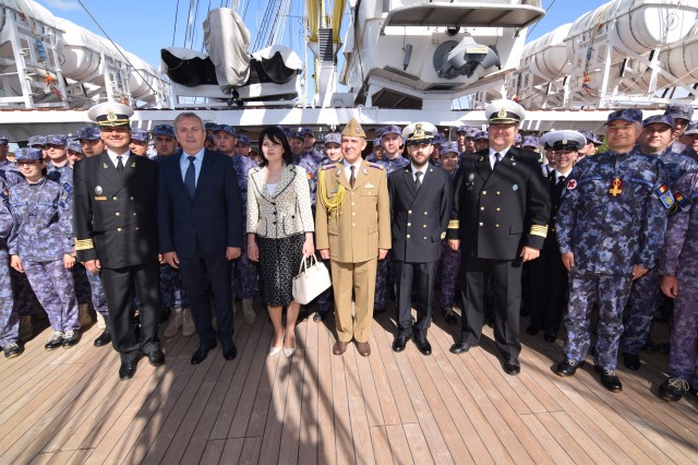 Primul port a adus la bord și primii vizitatori; nu foarte mulți, câteva sute în cele trei zile de staționare, inclusiv câteva grupuri de români stabiliți în regiune, primiți cu ospitalitate tipic româneasca de către cadeții-ghizi. Deocamdată afluența vizitatorilor este redusa in comparație cu cea anticipata, de exemplu, la Rouen, la Festivalul Armada de Rouen, dar începutul este promițător, mai ales că aici abia s-a dat startul sezonului estival.