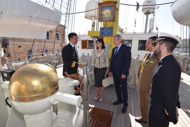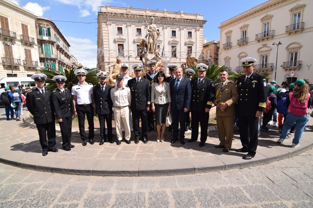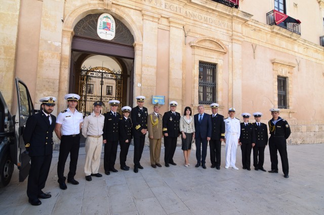 La bord l-am avut oaspete din prima zi a escalei pe locotenent-colonelul Cristian Răzvan Avramescu, atașatul adjunct al apărării de la Roma, care a petrecut trei zile agreabile alături de noi. De asemenea, in cursul zilei de luni au fost prezenți la bord doamna Carmen Liliana Iacob, consul-șef de misiune la consulatul României de la Catania și domnul Ioan Iacob, consul-adjunct; cel din urma ne-a declarat: „Din punctul nostru de vedere prezența N.Ș. Mircea, aici, la Siracusa, reprezintă un lucru deosebit datorită faptului că avem posibilitatea să sprijinim echipajul si nava pentru a promova cu succes imaginea reală a României si a Forțelor Navale Române. Ideea ca N.Ș. Mircea să fie vizitată de către public a fost una foarte binevenită, iar mulți români rezidenți, aici, în Sicilia s-au bucurat de această oportunitate”. Să nu uităm faptul că în Sicilia sunt peste 58.000 de români, vorbim aici doar de cei înregistrați oficial. În ultima zi a escalei au avut loc primiri oficiale la sediul Gărzii de Coastă, o clădire cu o vechime de câteva sute de ani unde am fost întâmpinați de comandorul Luigi D`Aniello, comandantul regiunii, la primăria orașului Siracusa, unde au avut loc discuții cu domnul Michelangelo Giansiracuza, șeful de cabinet al primarului, precum și la sediul prefecturii regiunii Siracusa, cu domnul prefect Luigi Pizzi. La bordul navei a fost oferit un prânz la care au participat oficialitățile amintite anterior, conducerea consulatului român de la Catania, alături de conducerea navei și a marșului.