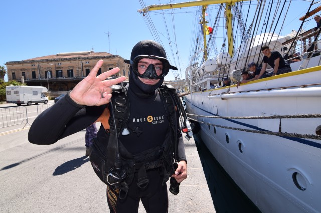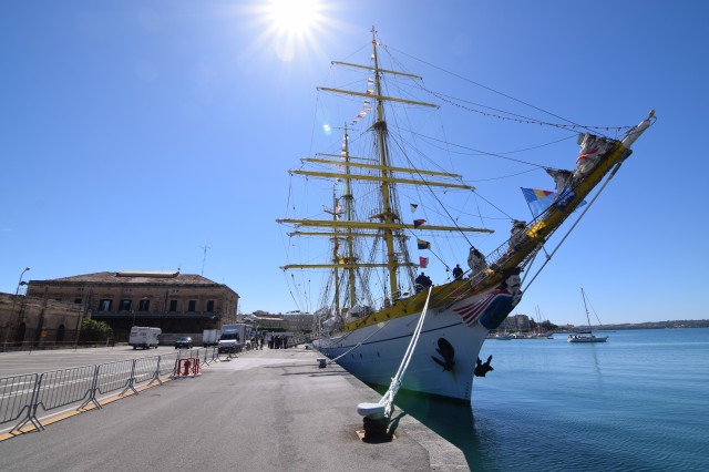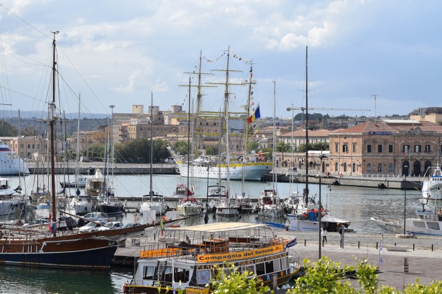 Vremea a fost puțin schimbătoare, a plouat destul de mult, dar a fost și mult soare. Atracțiile orașului lui Arhimede nu sunt puține, iar echipajul și cadeții le-au „gustat” pe toate, fie că vorbim de Piața Arhimede cu frumoasa Fontana Diana, Catedrala din Piața Domului, biserica Santa Lucia alla Badia, vechiul teatru grec, Urechea lui Dionisios, palatul Borgia, castelul Maniace, fântâna Aretusa, sanctuarul Madonna della Lacrima sau pur și simplu plimbările prin vechiul oraș, insula Ortigia. Escala noastră a coincis și cu sărbătoarea patroanei orașului, Santa Lucia, cu mii de localnici și turiști pe străduțele înguste până noaptea târziu, incheindu-se duminică seara la catedrala din Piața Domului cu un impresionant foc de artificii.