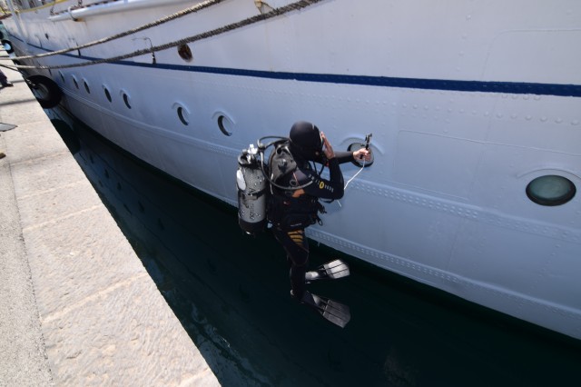 De la început trebuie să precizăm că Siracusa a fost o escală tehnică, pentru refacerea plinurilor la alimente, precum și pentru refacerea capacității echipajului după o primă săptămână destul de solicitantă pentru cadeți și echipaj. Chiar dacă toată lumea de la bord s-a bucurat de ceea ce are de oferit orașul lui Arhimede, programul specific oricărei escale s-a derulat normal. Aproape imediat după acostare, s-au ambarcat alimentele, legumele și fructele si s-a executat recepția, verificarea și depozitarea acestora; cadeții au alcătuit un șir continuu care pornea de pe cheu, de-a lungul schelei, la bordul navei, până la camera frigorifică si celelalte spații de depozitare. Aceasta activitate se va repeta în toate cele 12 escale ale marșului. De asemenea, cei doi scafandri de la bord, caporalul Constantin Androniciuc și soldatul Filip Iacovici au executat controlul și inspecția operei vii, adică a parții aflate sub apa a navei și au desfundat prizele de fund. De altfel, cei curioși pot vedea în fotografii cum arată elicea N.Ș. Mircea chiar dacă vizibilitatea în apă nu a fost cea mai bună. S-a mai curățat și piturat (vopsit) bordajul, au fost executate si mici reparații, lucruri marinărești firești pe timpul oricărei escale.